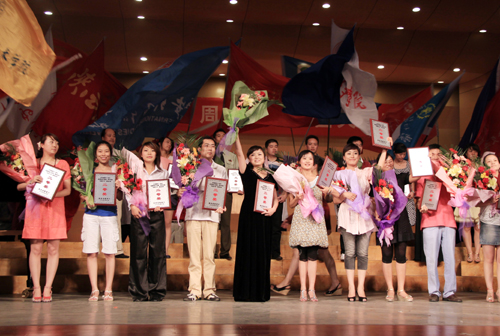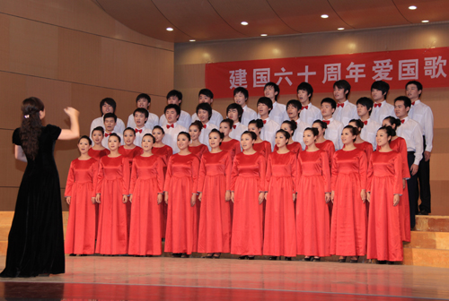 为迎接新中国成立60周年,充分展现我省广大师生的精神风貌和爱国热情。6月21日,由教育部发起、陕西省教育厅举办、陕西师范大学承办的“建国60周年爱国歌曲——陕西高校‘祖国万岁’歌咏活动”在陕西师范大学终南音乐厅隆重举行。我院姜波院长带队参加了比赛,艺术教育中心主任周玉昆教授,团委书记赵君慧一同观看了比赛。