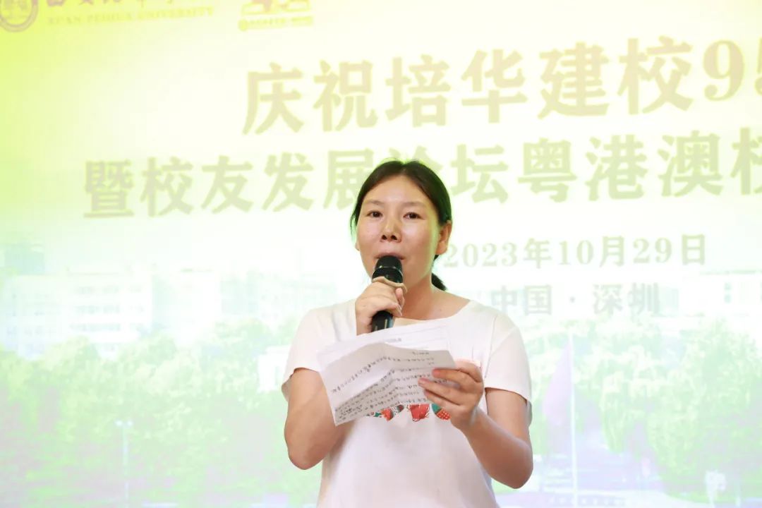党委宣传部部长、新闻中心主任、校友服务与发展中心主任柳雨如数家珍地向校友们介绍了学校的发展历史,回忆了培华女大和长安校区落成初期的故事,勉励校友们脚踏实地谋事业,以优异的成绩迎接母校百年华诞。