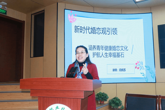 为引导广大青年学生形成积极健康的婚恋观与家庭观,12月4日下午,由陕西省妇女联合会指导,陕西省婚姻家庭服务与研究基地、商洛市妇女联合会联合主办,商洛职业技术学院承办的“新时代家庭观大宣讲”进高校主题实践活动在商洛职业技术学院图书馆报告厅举行。活动以“树立正确婚恋观,走好幸福人生路”为主题。商洛市妇联主席胡燕梅,商洛职业技术学院党委副书记、工会主席吴雪,副院长李承涛,陕西省婚姻家庭服务与研究基地负责人,西安培华学院女子学院副院长李蒙,骨干教师秦园,基地专家团成员及师生代表共200余人参加了活动。