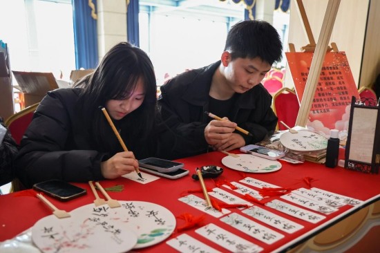 活动创新融合传统与创意,设置多个特色集市区域:书法集市中墨香四溢,同学们挥毫写下寓意吉祥的对联;投壶、套圈等趣味游戏让节日快乐翻倍;糖葫芦制作、咖啡体验区则充满烟火气;劳动教育成果集市里,同学们现场分发亲手种植的青菜;民族体验区更让师生近距离感受少数民族传统文化魅力。