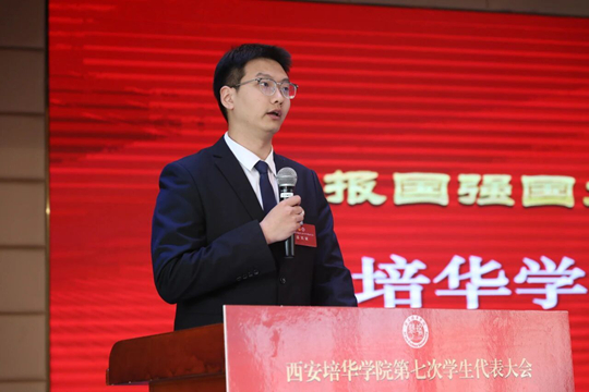 立报国强国大志向,做挺膺担当奋斗者。12月26日,西安培华学院第七次学生代表大会在恒友楼四楼报告厅顺利召开。西安培华学院副校长、党委副书记姚文静,陕西省学联驻会执行主席张一洋,党委学工部部长、学生服务中心主任权勇太,党委学工部副部长、学生服务中心副主任杨媛,校团委书记、校学生会秘书长董莹,西安石油大学学生会执行主席徐顾铭,各二级学院党委书记、副书记、团委书记、学生会指导老师等出席会议。