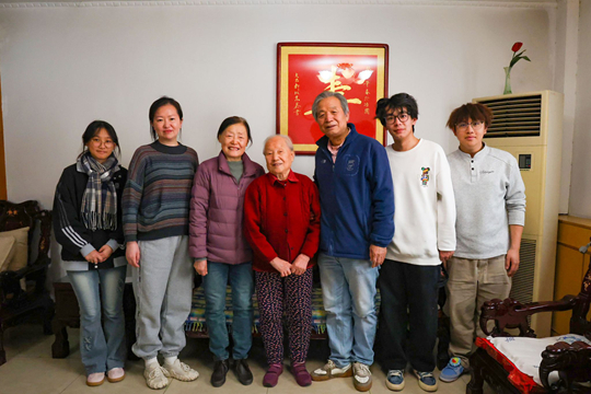 贠郿凤及家属与《百年培华·百人百事》栏目师生合影