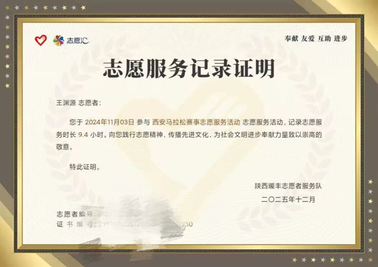 在实验室里,穿着白大褂的王渊源,眼神里闪着光。作为核心成员,她参与的大创项目获批省级立项,那个在显微镜前一丝不苟的身影,正在一步步靠近她“用医学知识服务人民健康”的誓言。更难能可贵的是,她自己是被光照亮的人,却总想着如何把光反射给更多人——西安马拉松的赛场上,她是热情服务的志愿者;在社区安全宣讲中,她耐心普及急救知识;在潏河边,她弯腰捡拾垃圾,践行环保理念。有人问她为什么这么热衷公益?她说:“我一路走来,受到了太多人的帮助,这份温暖,我想传递下去。”