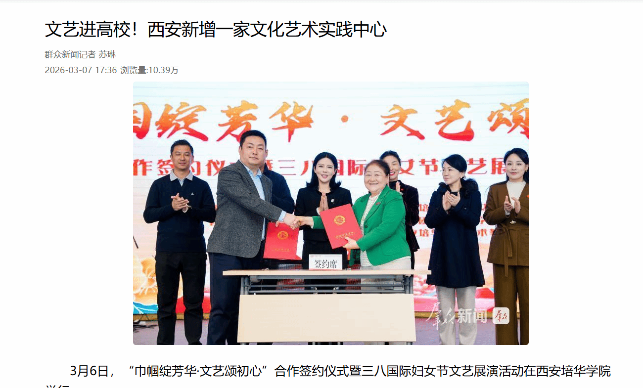 群众新闻网:文艺进高校!西安新增一家文化艺术实践中心