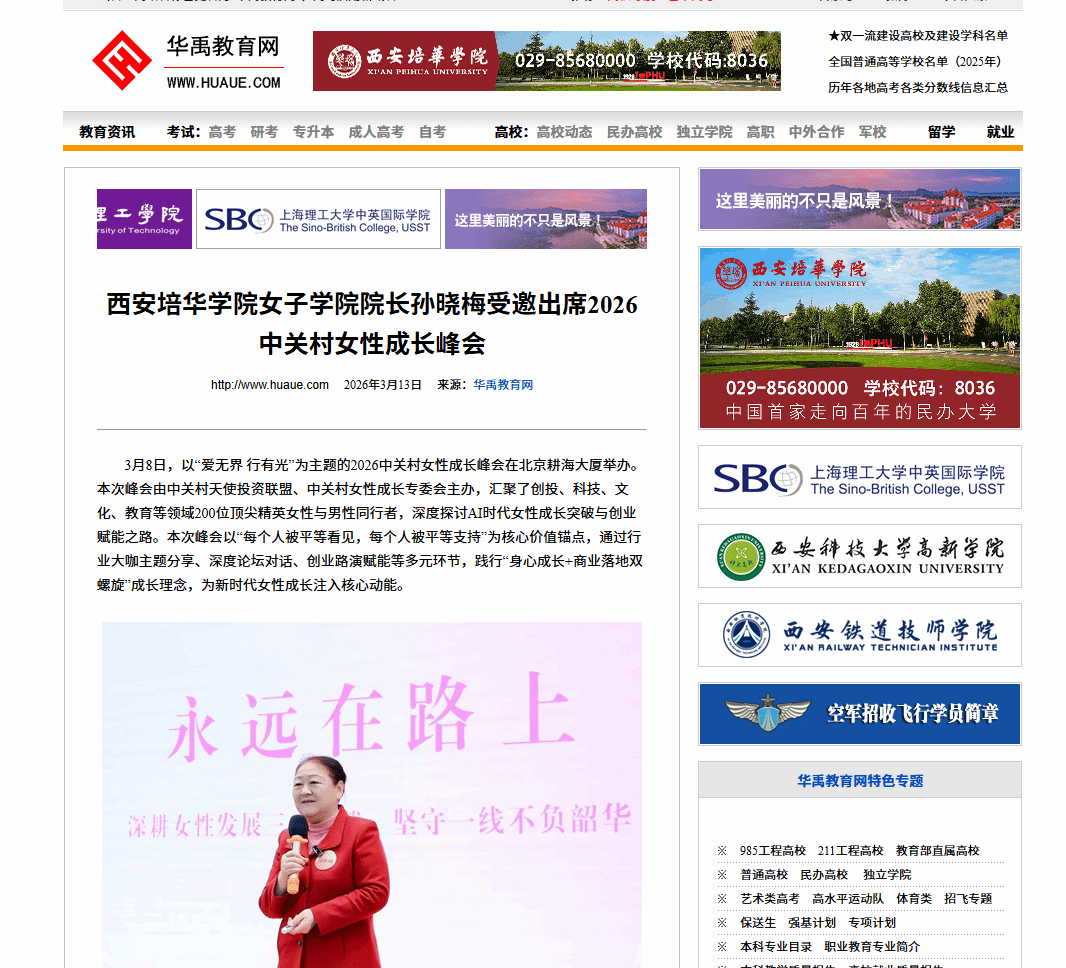 作为国内女性教育的重要阵地,西安培华学院女子学院将始终以推动女性全面发展为己任,在女性人才培养、女性学研究、妇女儿童权益保障等方面持续发力,加强与国内外女性发展领域的交流合作,将峰会中的先进理念与优质资源融入人才培养与科研实践,为更多女性的成长与发展赋能,助力新时代女性在各自的赛道上绽放独特光芒。