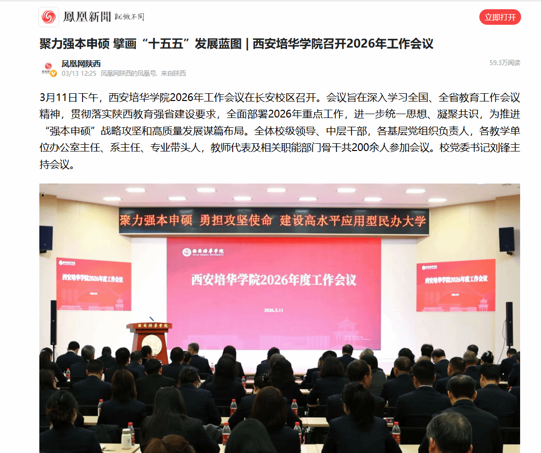 凤凰新闻:聚力强本申硕 擘画“十五五”发展蓝图 | 西安培华学院召开2026年工作会议