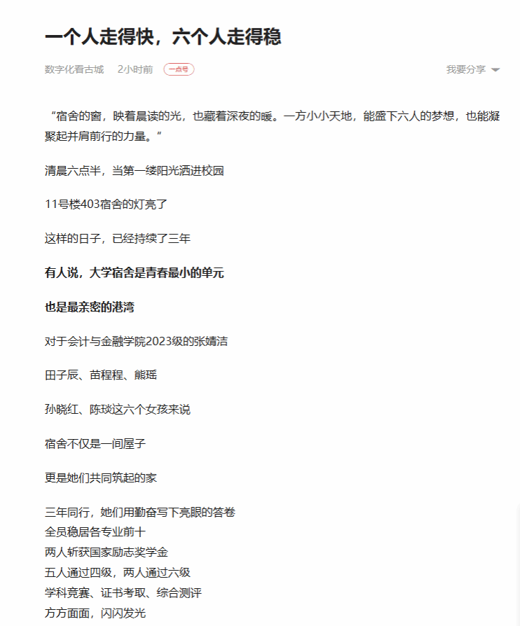 宿舍的窗,映着晨读的光,也藏着深夜的暖。一方小小天地,能盛下六人的梦想,也能凝聚起并肩前行的力量。”