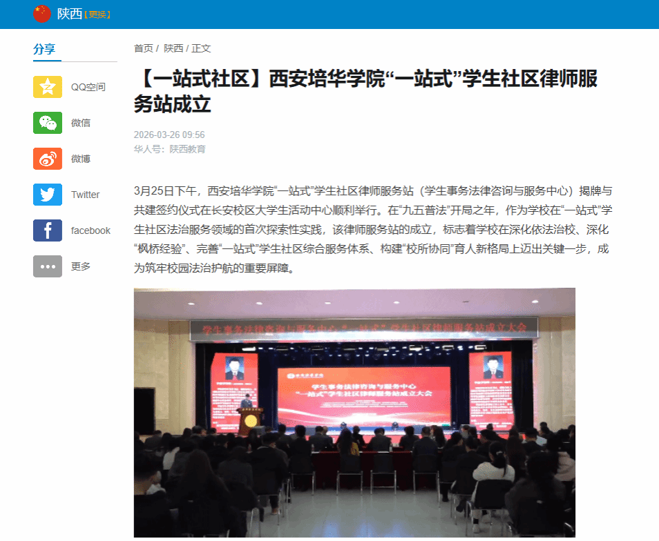 华人头条:【一站式社区】西安培华学院“一站式”学生社区律师服务站成立