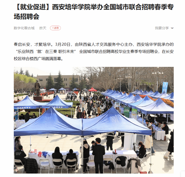 一点资讯:【就业促进】西安培华学院举办全国城市联合招聘春季专场招聘会