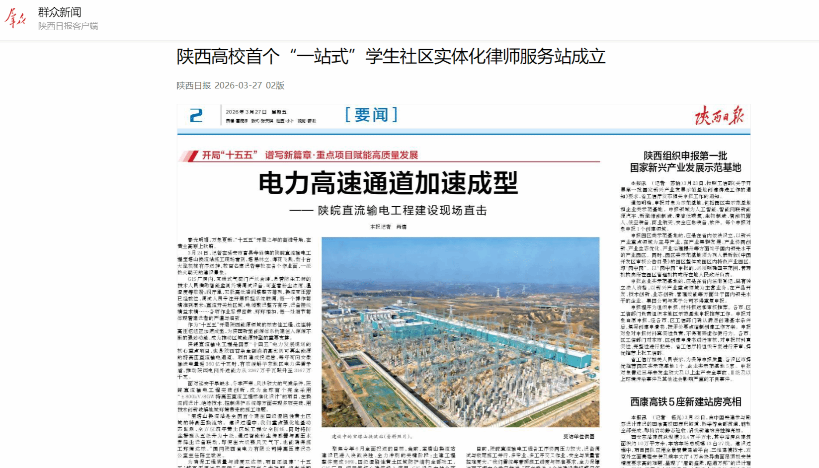 群众新闻:陕西高校首个“一站式”学生社区实体化律师服务站成立