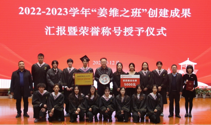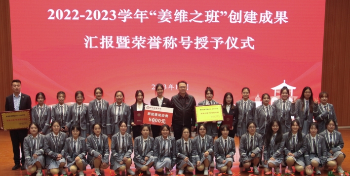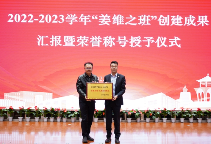 ▲校长李映方教授为“姜维之班”创建提名班颁奖