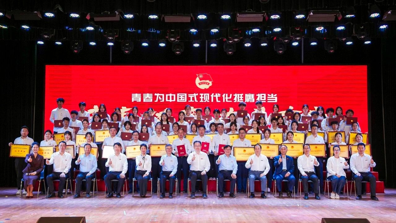 当晚,“青春挺膺 奋斗有我”2025年共青团表彰大会在大学生活动中心举行,理事长姜波致辞,副校长、党委副书记姚文静宣读表彰文件。校团委书记董莹主持。