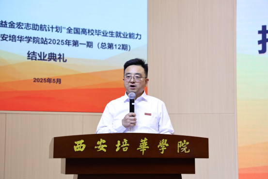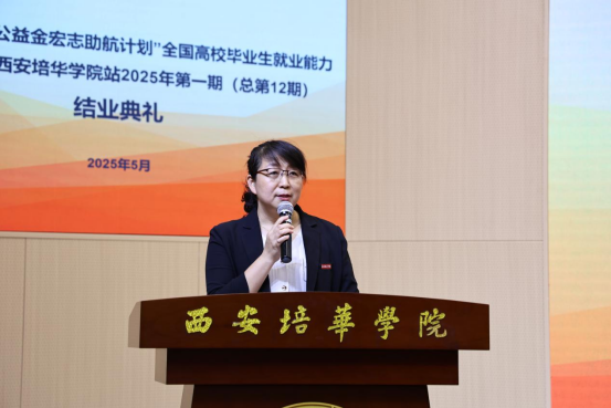 5月22日中午,西安培华学院2025年“中央专项彩票公益金宏志助航计划”全国高校毕业生就业能力提升培训班第一期(总第12期)结业典礼在明德楼报告厅顺利举行。招生与就业指导中心主任姚斌、副主任王琳、各二级学院领导、带班班主任及350名学员代表出席了本次活动,共同见证学员们的成长与收获。
