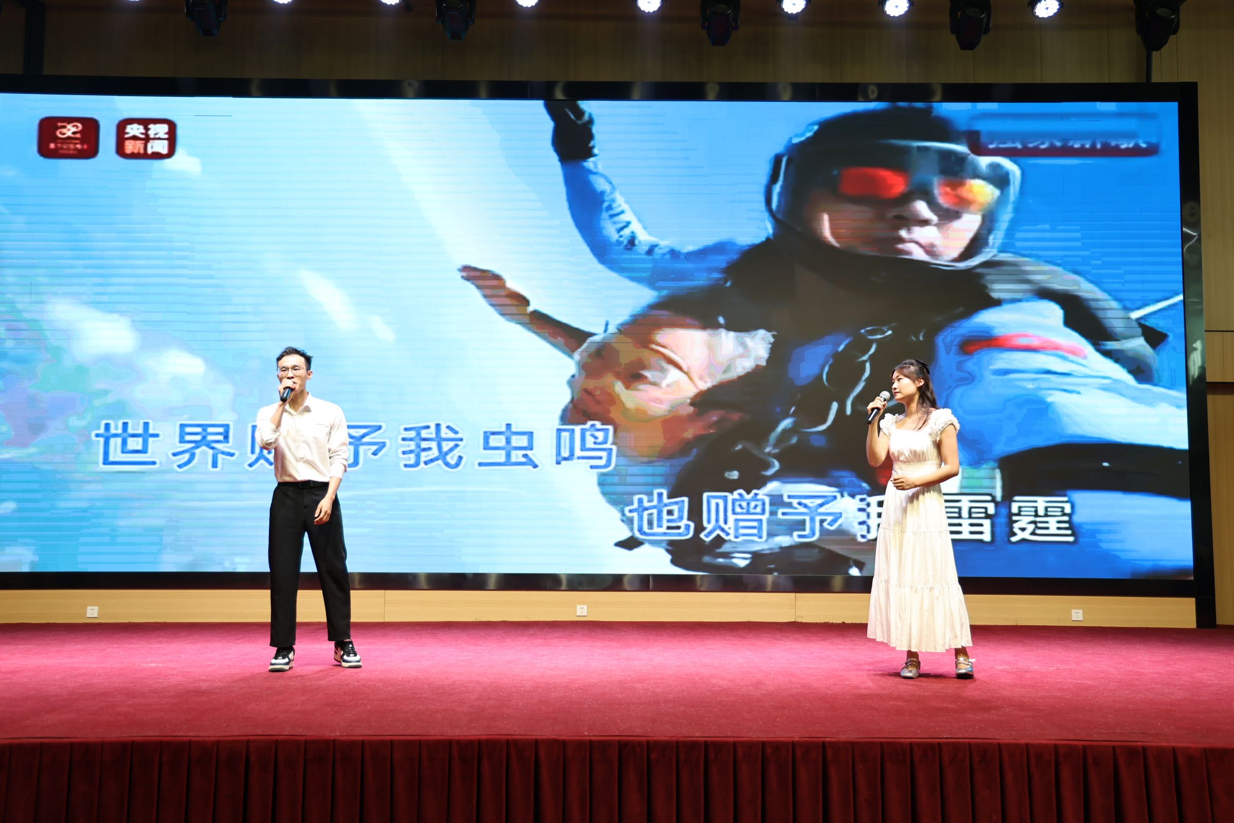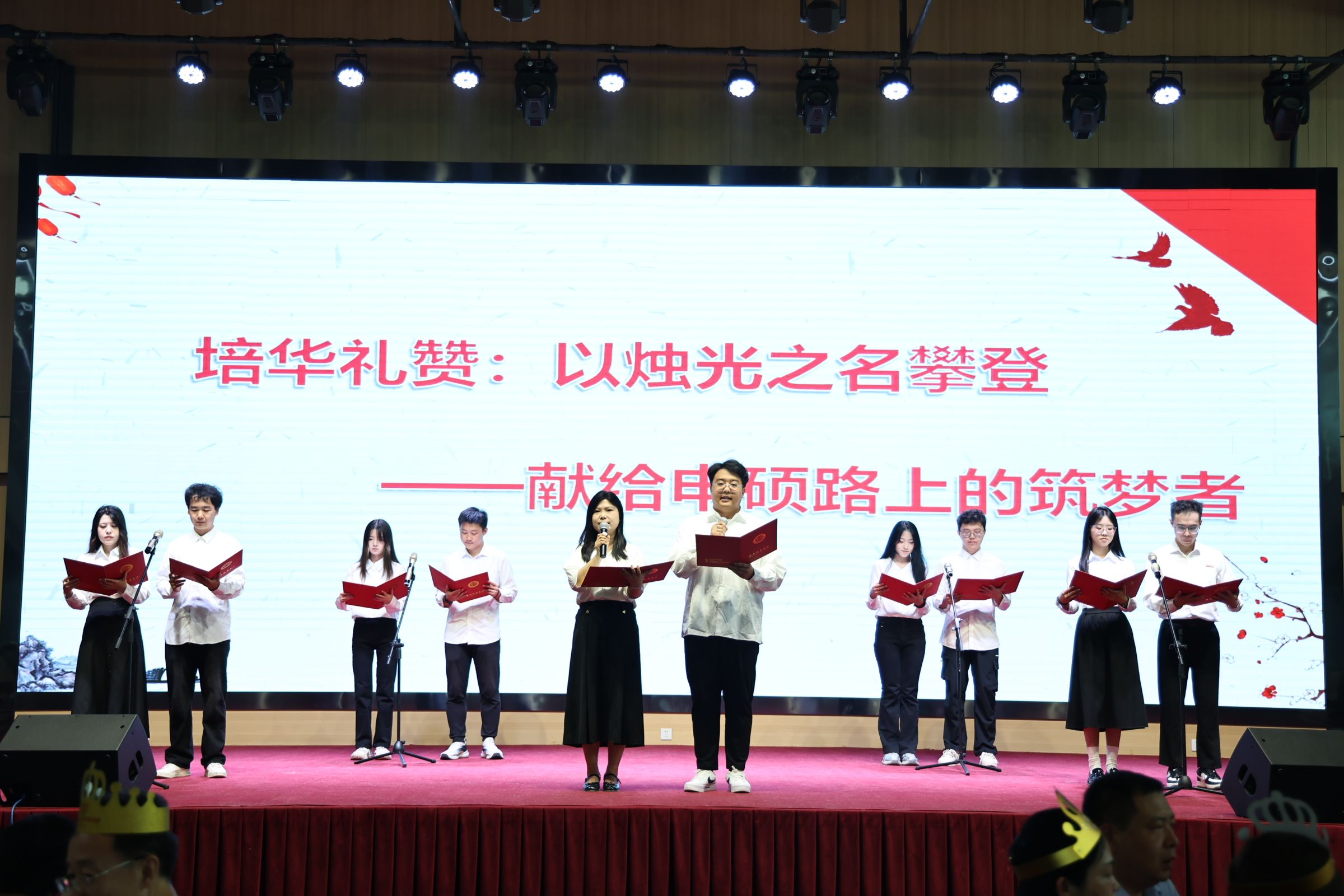 生日会上,马克思主义学院和培华职高的师生们带来了精心准备的文艺节目。黄嘉鑫、张梦珅两位教师用动人和声演绎《世界赠予我的》,歌声清亮婉转,将岁月静好的温柔与生活馈赠的美好娓娓道来;王金娇、毕静烨子、张梦珅三位老师携手学生代表,深情演绎朗诵作品《培华礼赞:以烛光之名攀登——献给申硕路上的筑梦者》,字字铿锵的诵读声中,饱含着对申硕工作者的崇高敬意与深切礼赞;职业高中学生马艺霏、张欣怡等在朱静老师的指导下,以舞蹈《灯火里的中国》惊艳亮相。舞步流转间,勾勒出祖国的璀璨画卷。紧接着,培华职高教师张语诗带来英文独唱《Angel》,其清澈的嗓音与动人旋律完美交融。