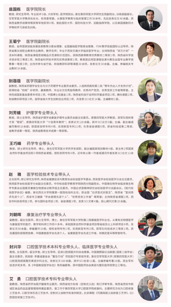 口腔医学技术是西北地区第二家口腔医学技术本科培养单位,中国口腔医学技术联盟理事单位。专业拥有一支由知名专家教授领衔、具有高度协作精神、生机勃发的师资队伍,专家教授多来自于空军军医大学和西安交通大学,骨干教师行业经验丰富;校内实验实训设施精良,配备最新版3Shape软件、口内扫描仪、3D打印机等先进设备,强化数字化口腔技术的培养,充分满足教学需求;拥有多家深度合作的优质产教融合基地,培养专业基础扎实、操作技能过硬、具备良好的团队合作及创新能力、终身学习能力的高素质复合型、数字化技能应用人才。