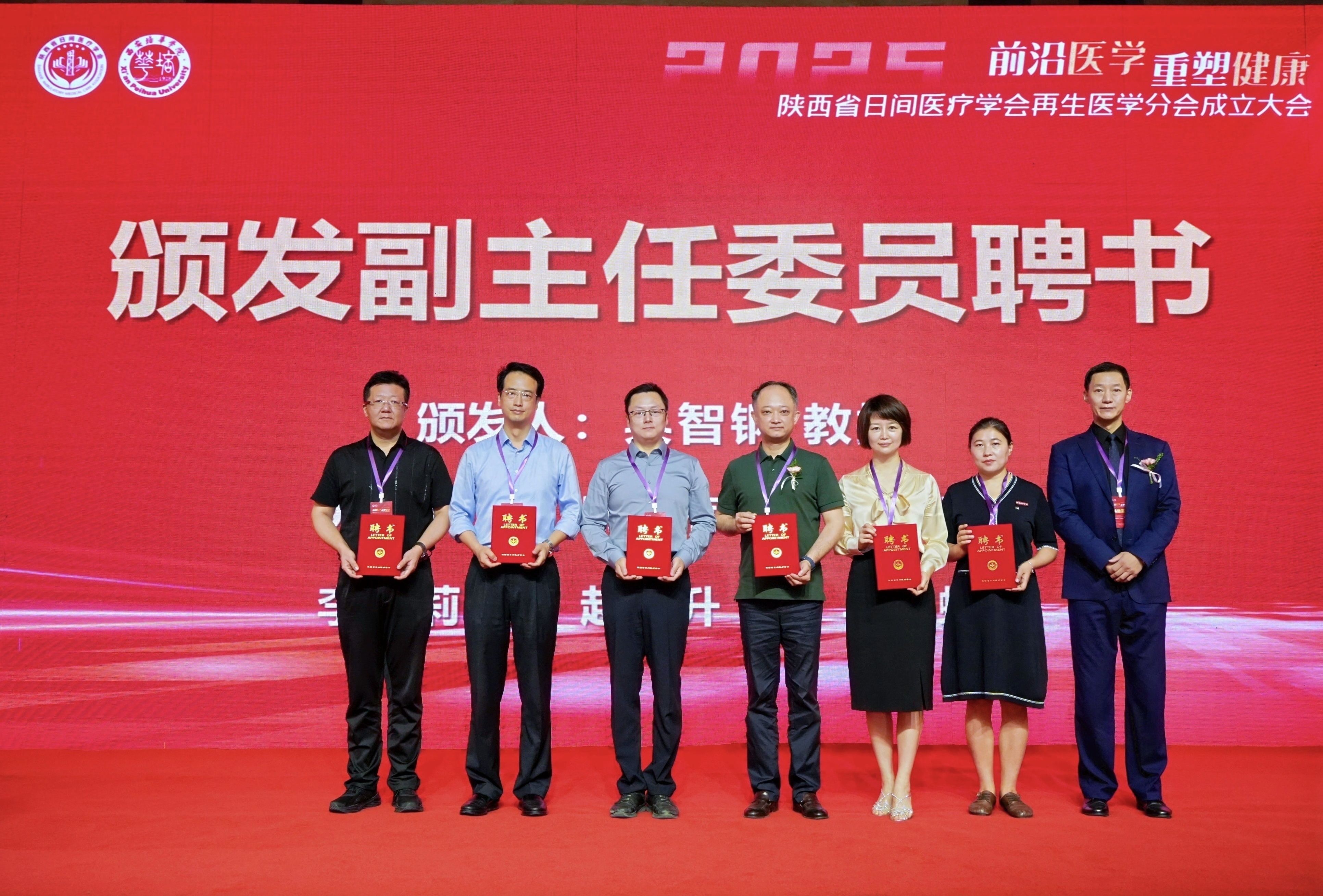 与会嘉宾共同见证了陕西省日间医疗学会再生医学分会的成立。会上,公布了主任委员单位、副主任委员名单及常委名单等。