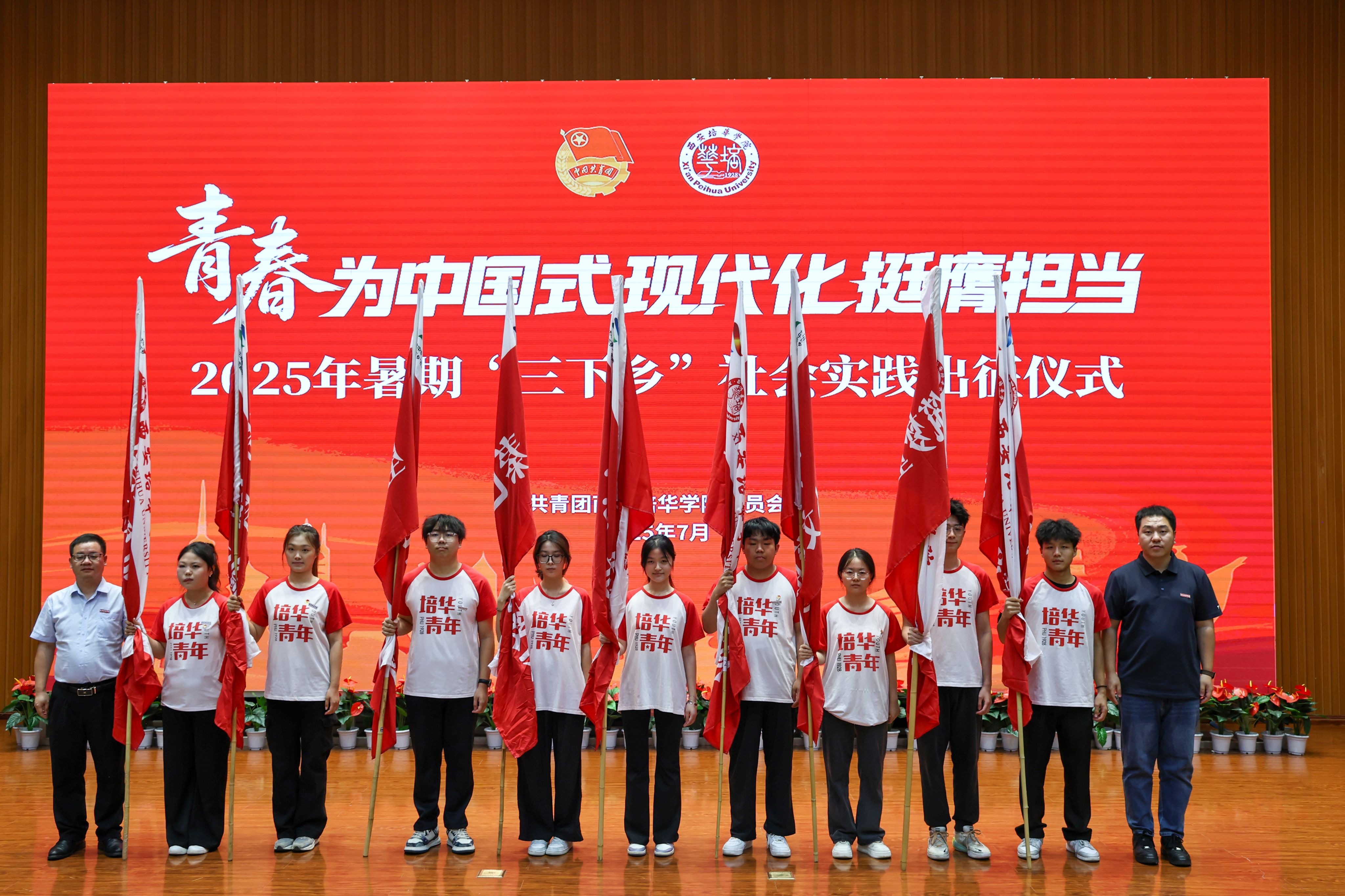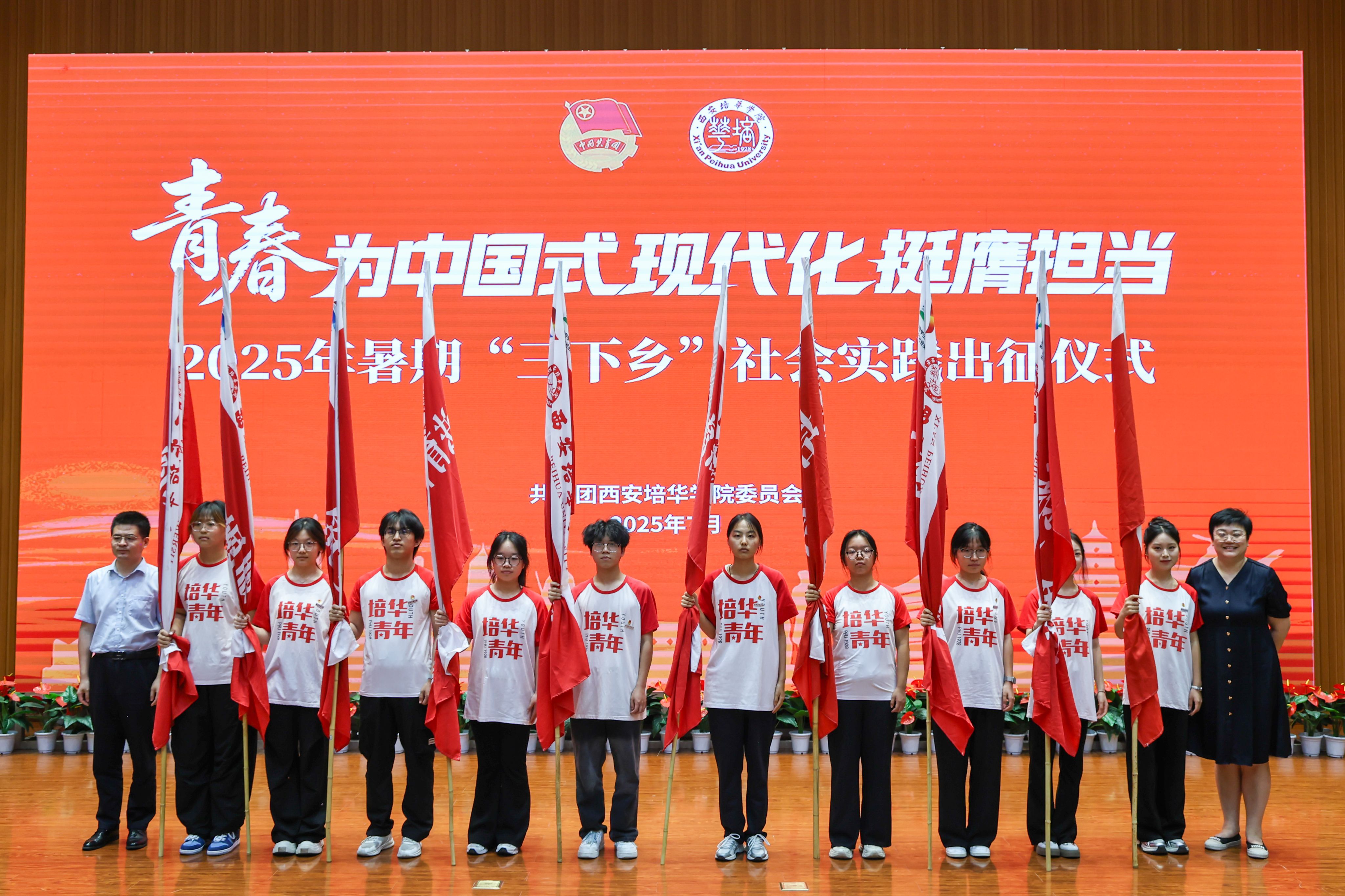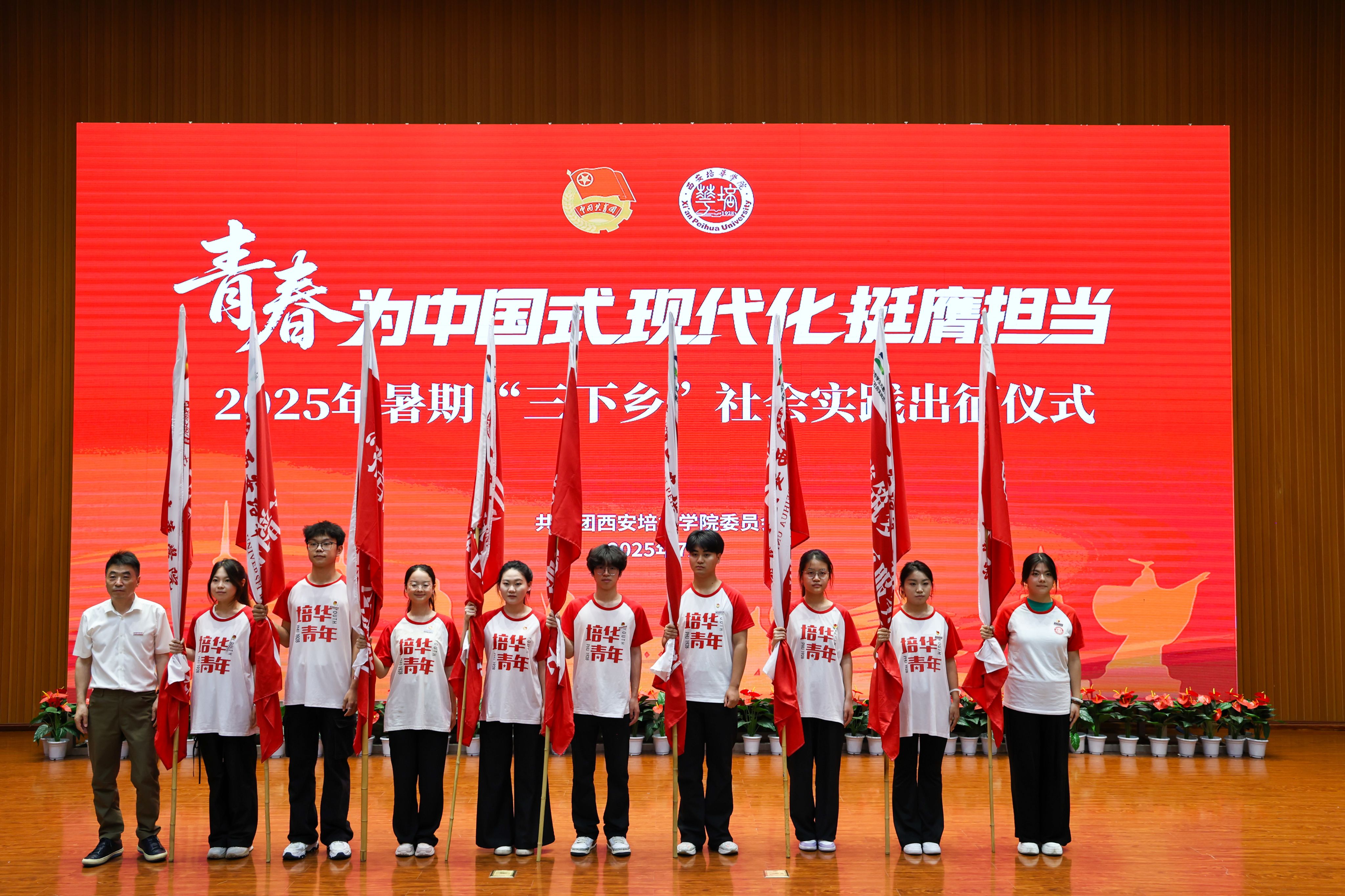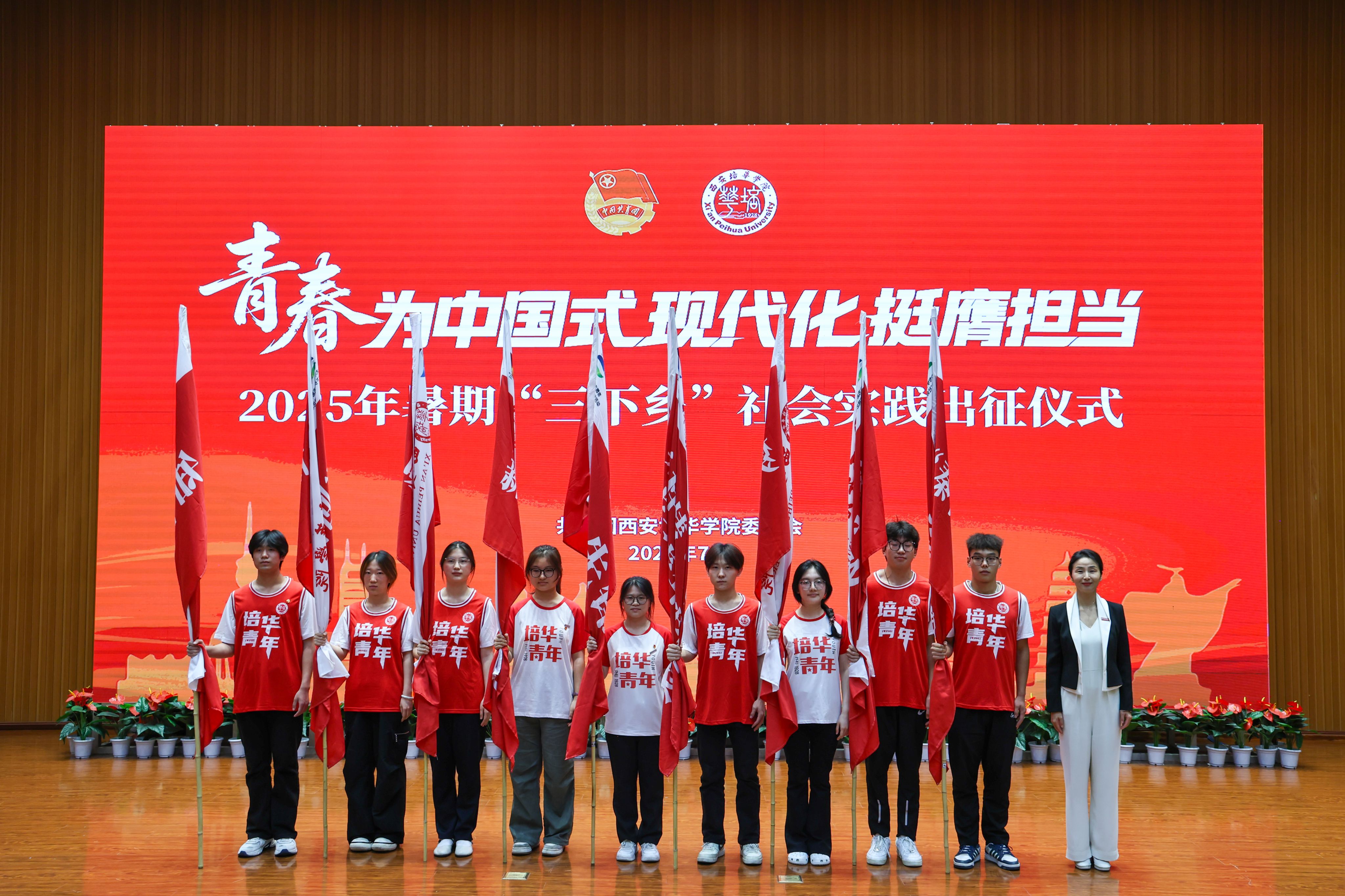 7月1日,西安培华学院2025年暑期“三下乡”社会实践出征仪式在图书馆报告厅举行,西安市青年志愿者行动指导中心主任赵娟,西安市灞桥区团委书记吴彬彬,学校党委书记刘锋,党委副书记、副校长姚文静,党委副书记蔡亮以及各院(部)、中心相关领导,校级立项团队指导老师代表,实践团队代表等400余师生齐聚一堂,共赴实践之约。