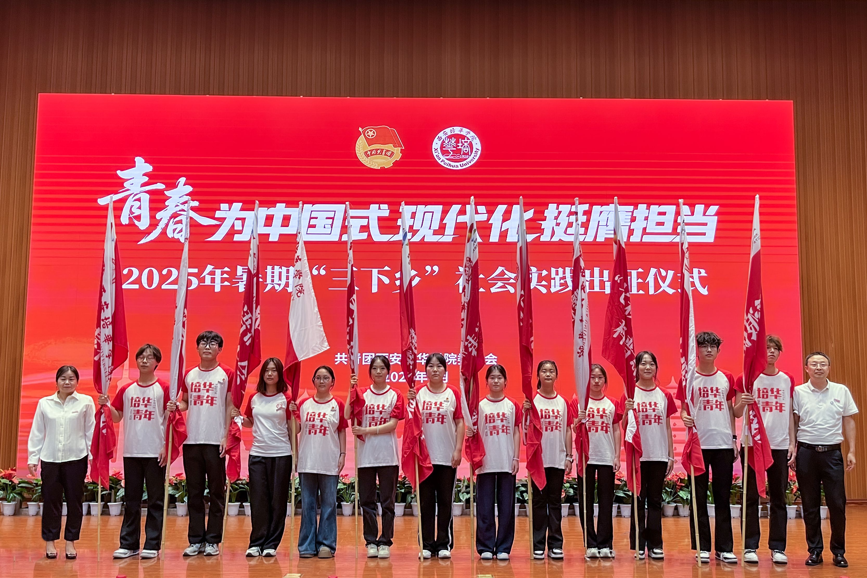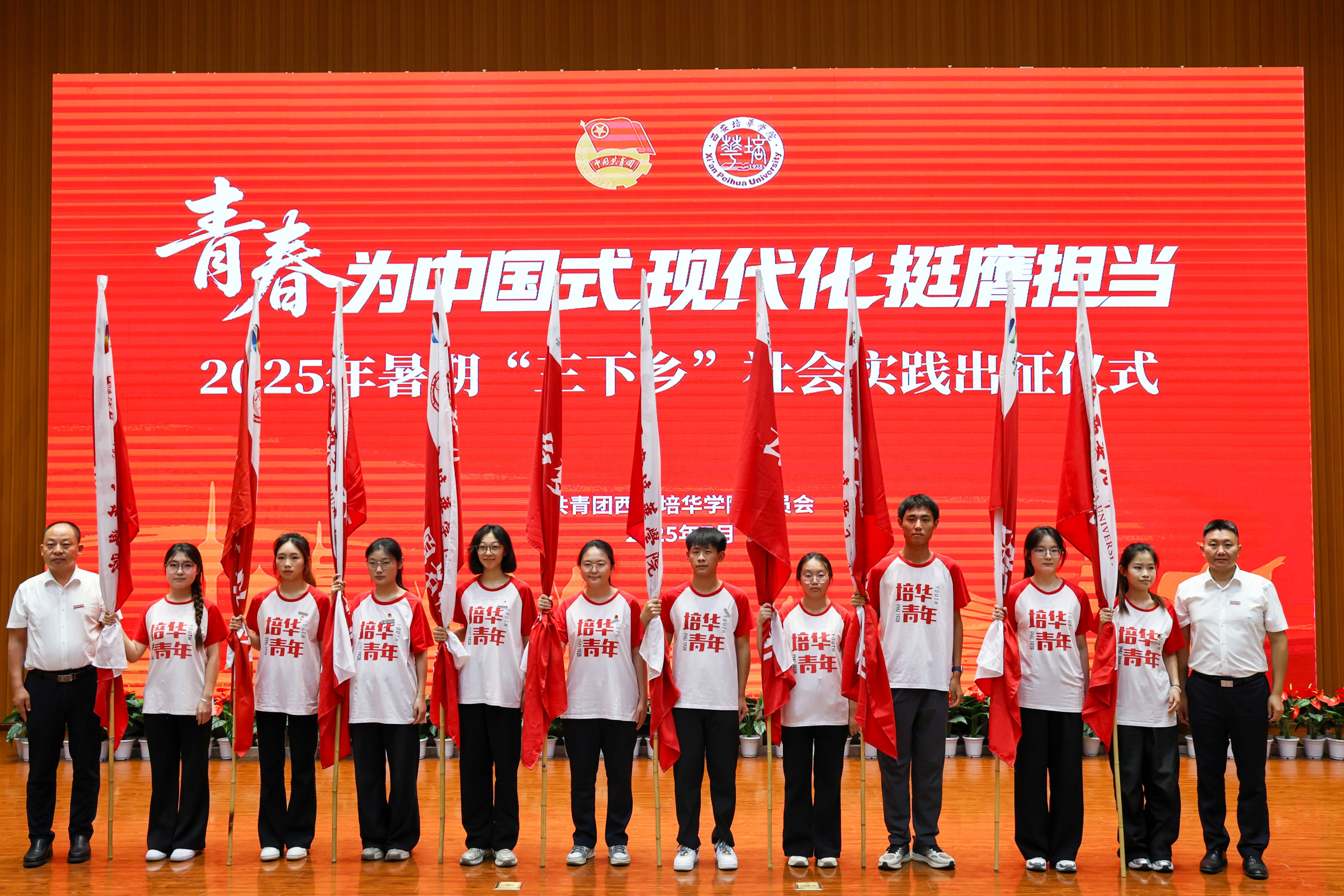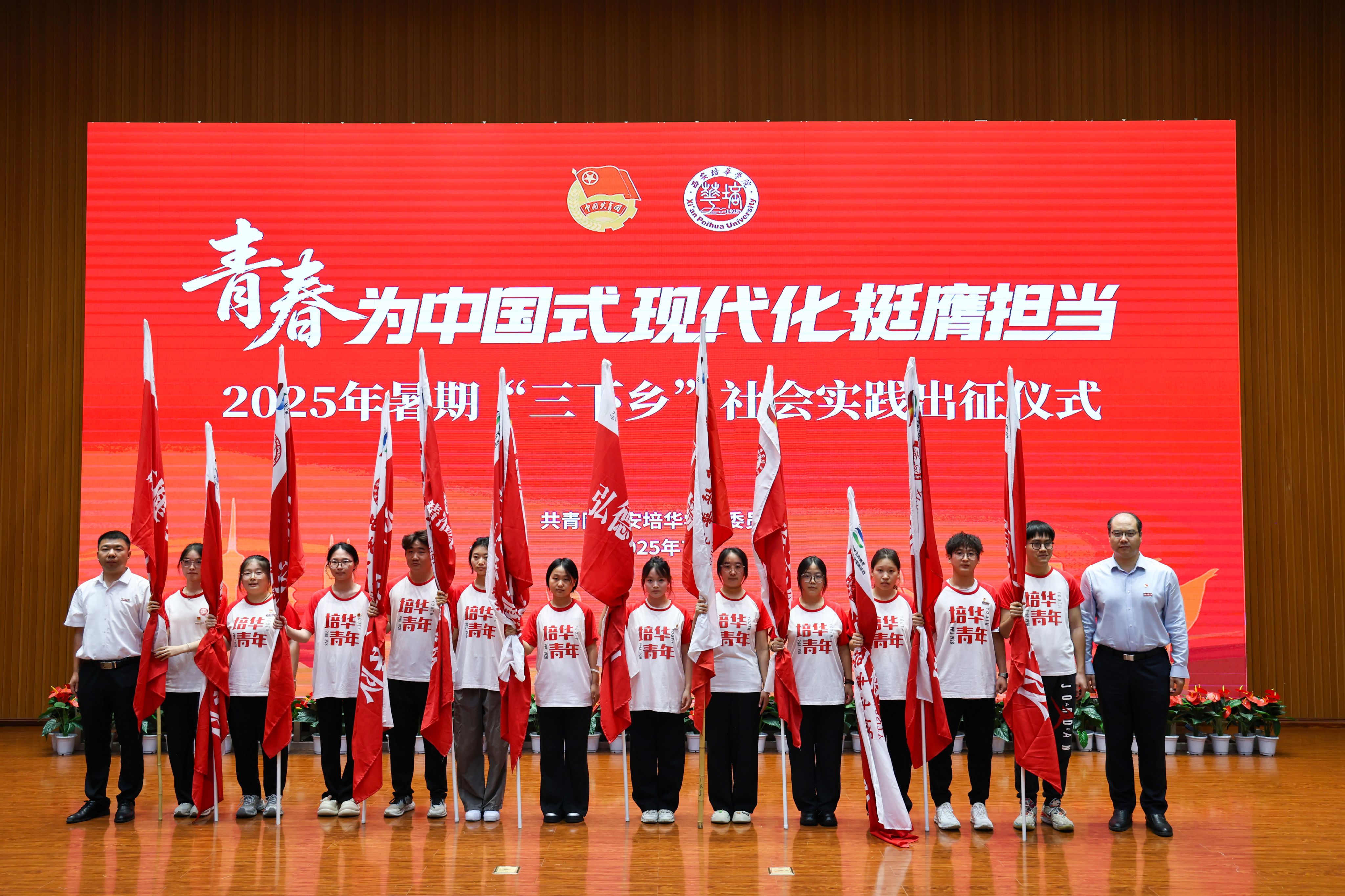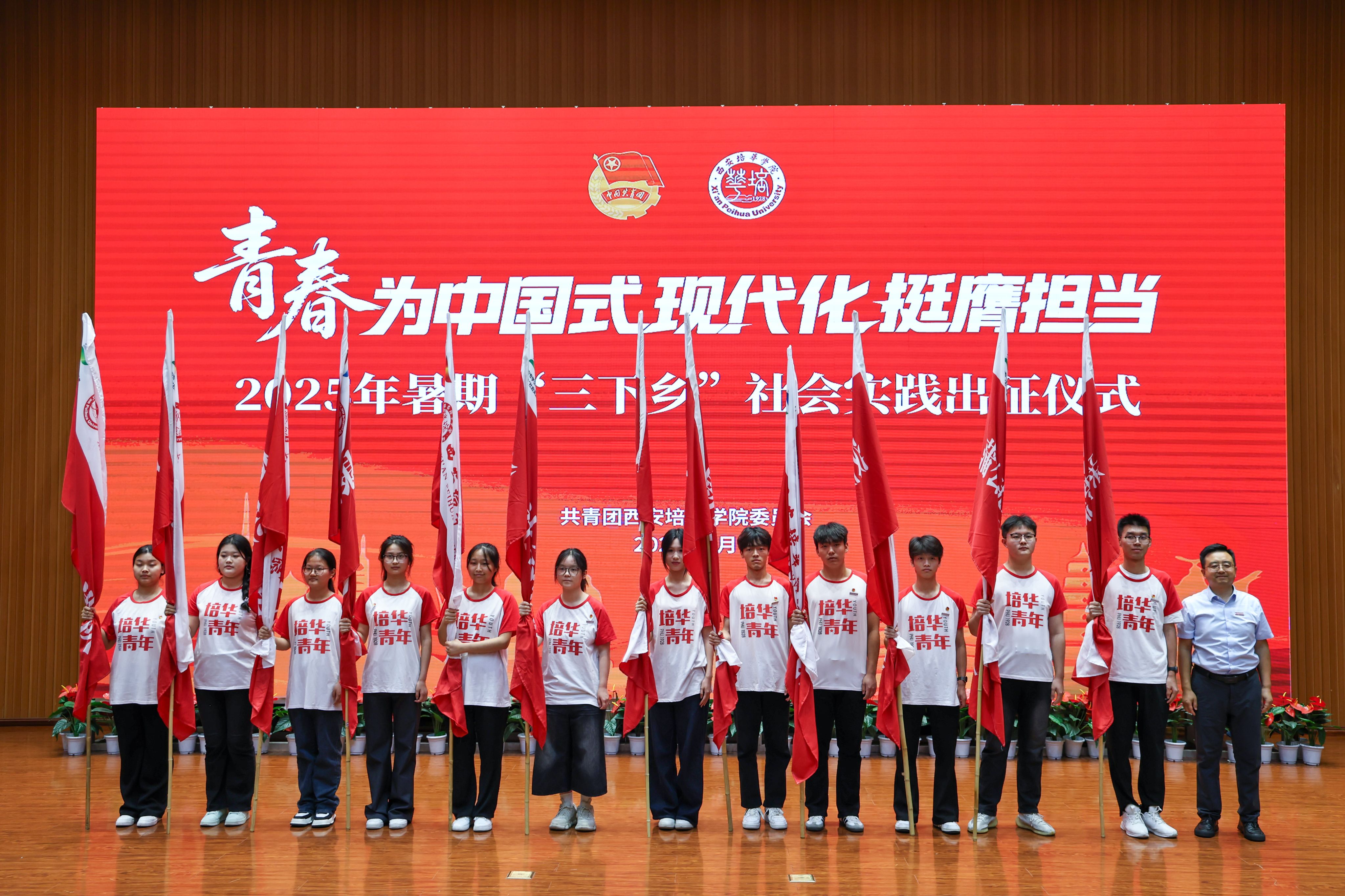 7月1日,西安培华学院2025年暑期“三下乡”社会实践出征仪式在图书馆报告厅举行,西安市青年志愿者行动指导中心主任赵娟,西安市灞桥区团委书记吴彬彬,学校党委书记刘锋,党委副书记、副校长姚文静,党委副书记蔡亮以及各院(部)、中心相关领导,校级立项团队指导老师代表,实践团队代表等400余师生齐聚一堂,共赴实践之约。