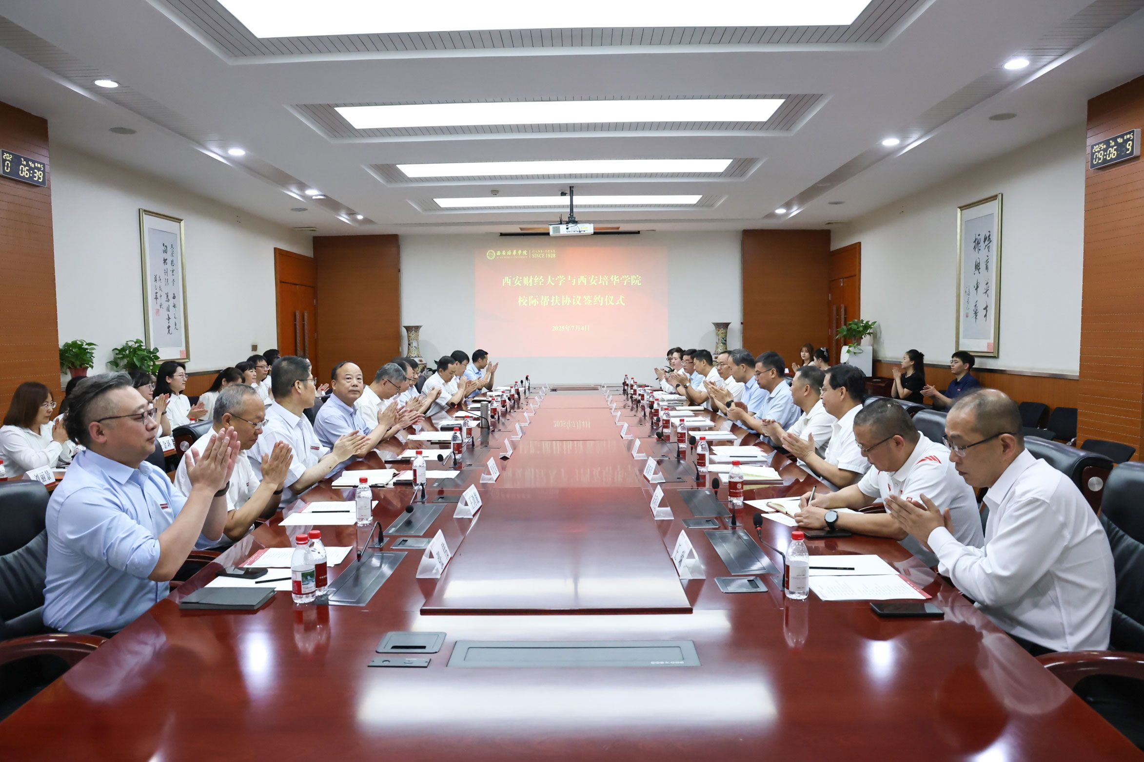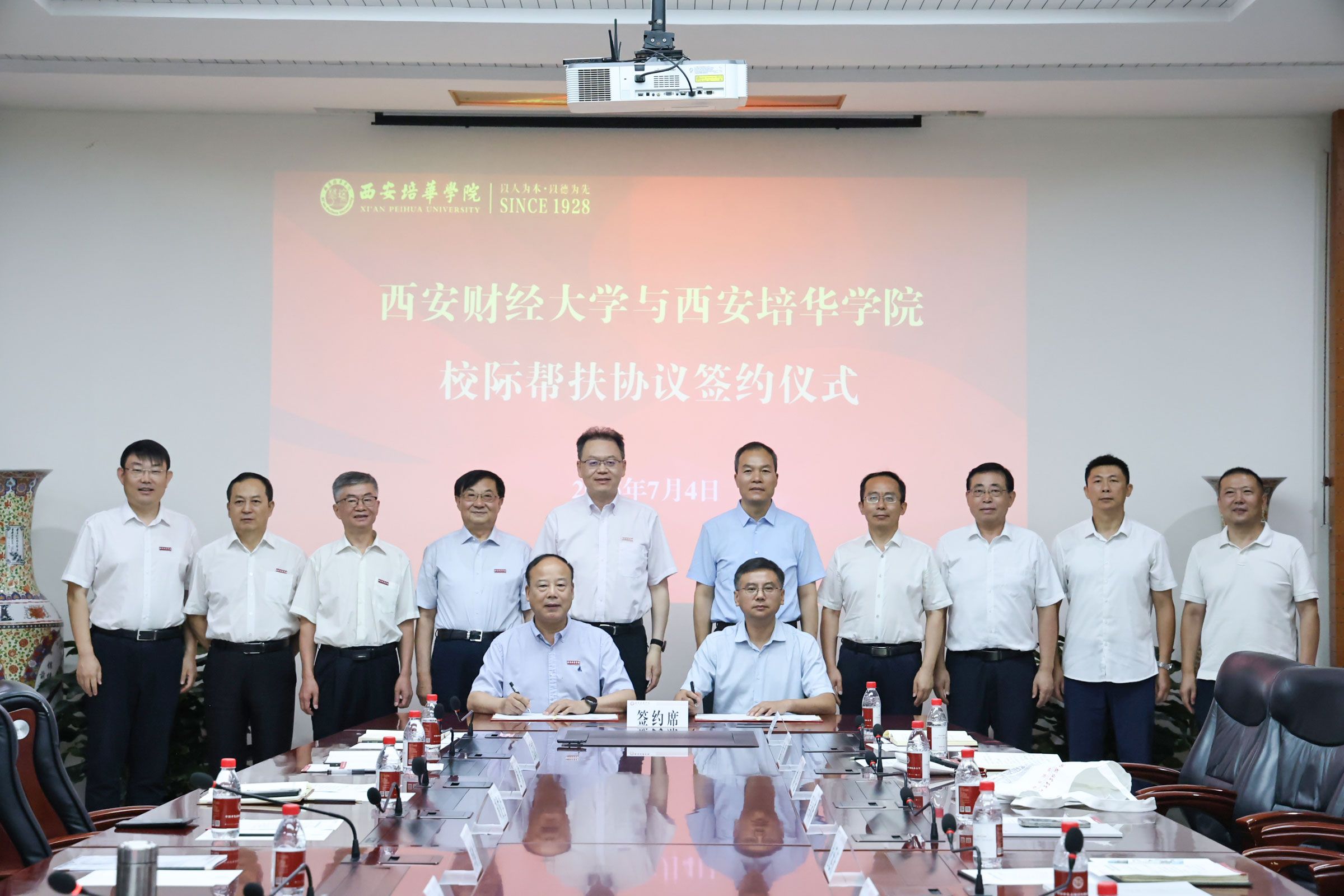 西安财经大学副校长史卫民、西安培华学院副校长罗新远代表双方签署了《西安财经大学与西安培华学院校际帮扶协议》《联合培养硕士研究生协议》。