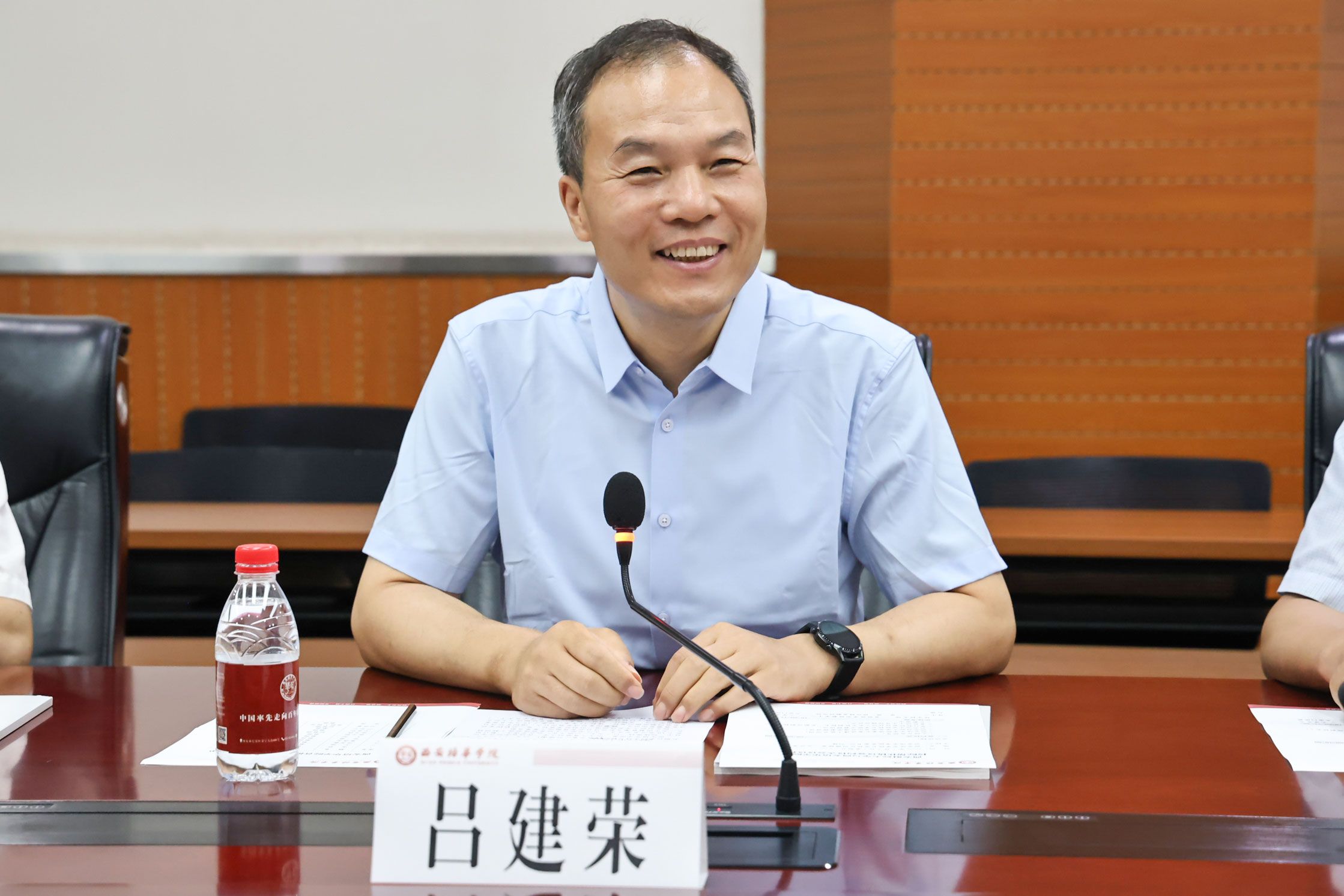 理事长姜波对西安财经大学一行来访表示热烈欢迎,并对近年来西财大取得的丰硕成就表示祝贺。他表示,两校历史渊源深厚、基因血脉相连,多年来结下了深厚的同根情谊,为进一步深化合作、夯实基础,在建设教育强国新征程上,民办高校的高质量发展离不开公办大学的帮助和指导,学校将认真贯彻落实省委、省政府精神,围绕学科建设、科学研究、教育教学、人才培养等领域深入开展合作,共同携手并进,推动陕西高等教育高质量发展。