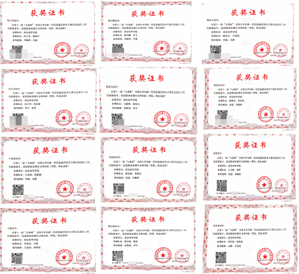 大唐杯全国大学生移动通信技术大赛部分获奖证书