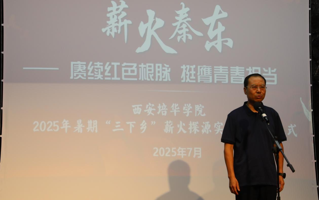 寇军强宣布2025年西安培华学院“薪火探源”实践队“三下乡”活动正式启程