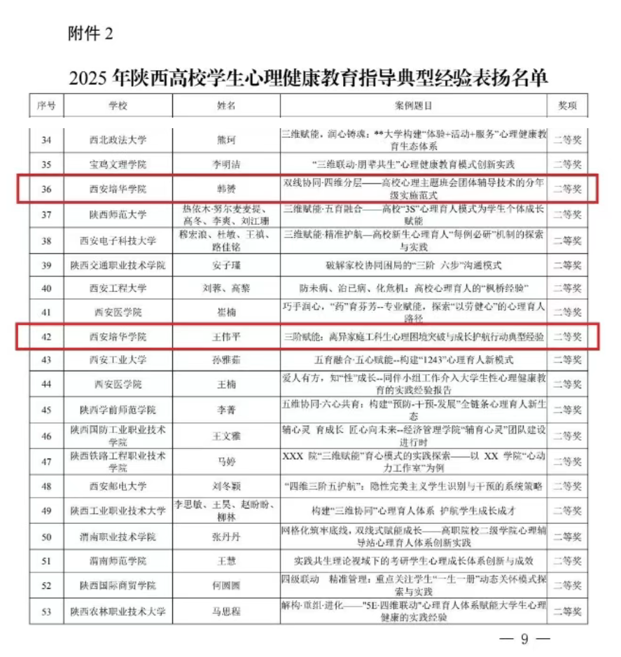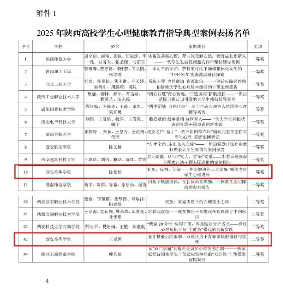 十年耕耘,初心如磐。在刚刚揭晓的第十届陕西高校“阳光护航”心理育人宣传季实践活动成果中,西安培华学院的老师们以扎实的专业积淀与温暖的育人实践收获省级荣誉5项,其中一等奖1项,二等奖4项。这份沉甸甸的认可不仅是对老师们默默付出的肯定,更是学校长期深耕心理育人沃土、探索形成特色“培华范式”的生动注脚。