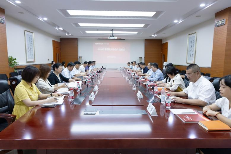 为推进产教融合,构建高校与企业合作培养人才的平台,8月26日下午,西安培华学院校企合作洽谈会在明德楼第一会议室举行。陕西省文化产业协会副会长兼秘书长鲁吉安、陕西文投丝路西部文化传媒有限公司董事长李保林、陕西博龙文化艺术品有限公司董事长温志鹏、新华视界(北京)传媒有限公司董事长江山等企业代表,西安培华学院理事长姜波,校长助理秦海锋,党委副书记、宣传部部长蔡亮,传媒与设计学院院长詹秦川、副院长邵璐及全体专业负责人等20余人出席座谈会,座谈会由传媒与设计学院党委书记兼行政副院长王飞主持。