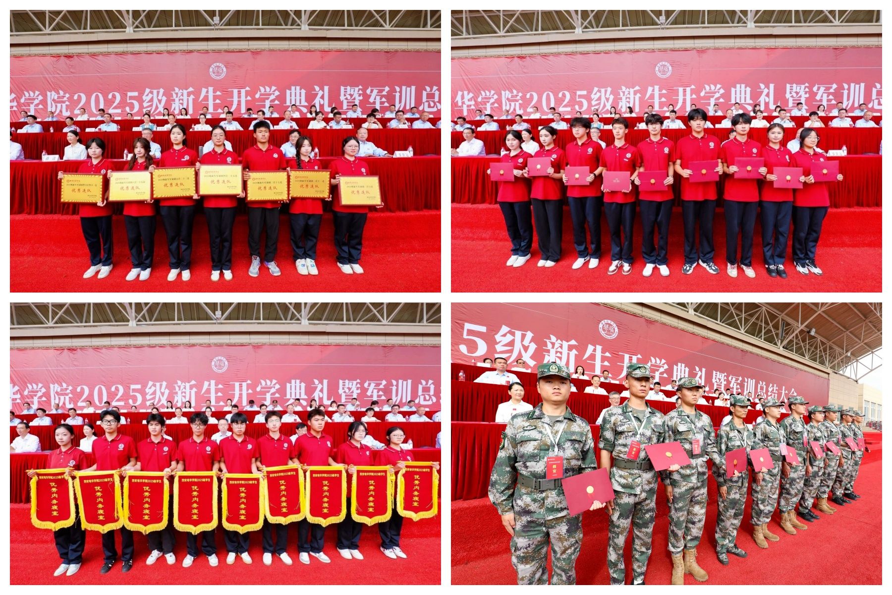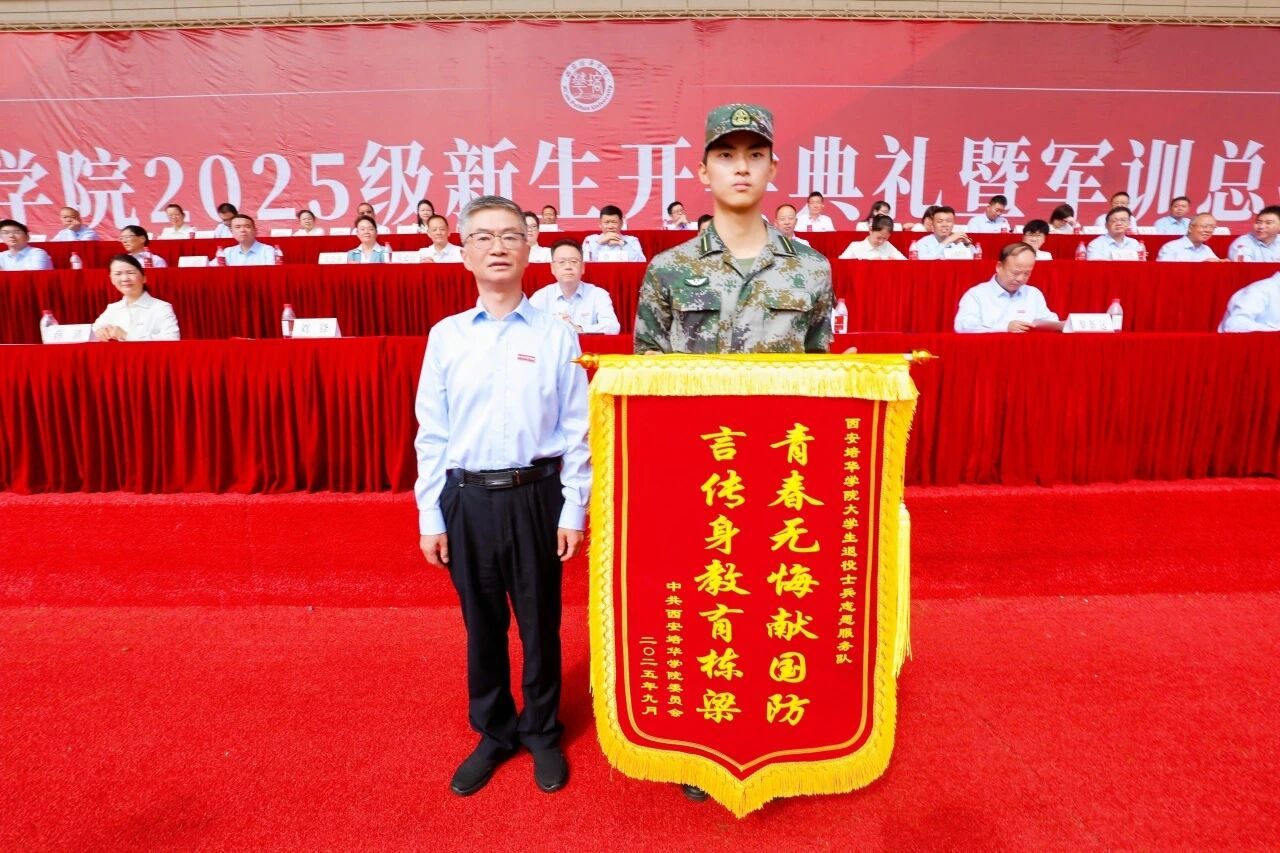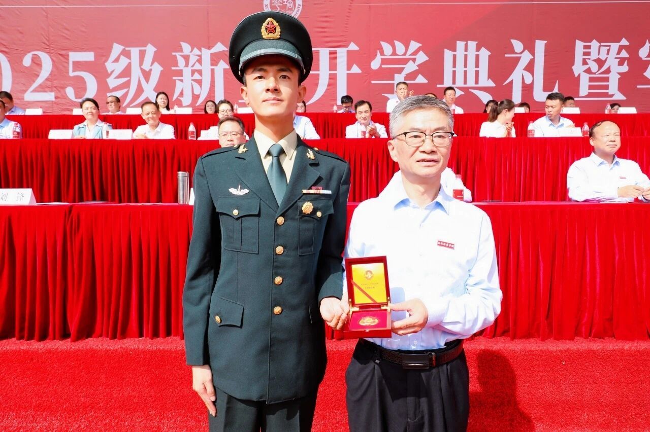 校长李映方宣读《关于表彰2025级新生军事国防教育先进集体和个人的通报》《关于表彰2025级新生军训团军训教官的通报》。获得2025级新生军事国防教育优秀连队、优秀个人和优秀内务寝室、标兵教官代表分别上台领奖。党委书记刘锋向承训部队赠锦旗,对全体承训教官“青春无悔献国防”的使命担当和“言传身教育栋梁”的辛勤付出表示衷心感谢。