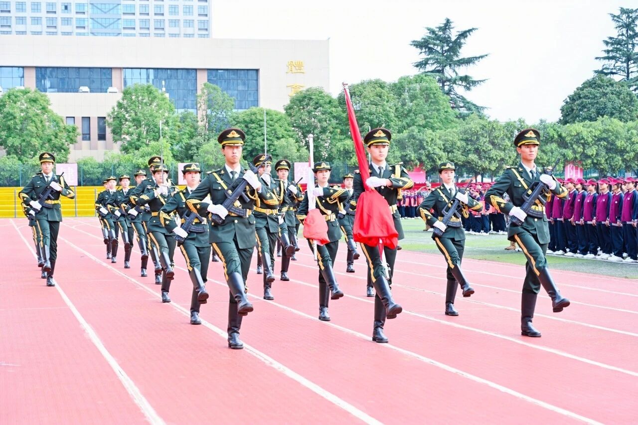 2025级新生以丰硕的军事训练成果交出青春答卷。汇报表演成为全场焦点:红歌朗诵队以铿锵之声穿越百年风华,“没有共产党就没有新中国”“团结就是力量”“少年强,则中国强”的誓言,字字句句皆是培华学子对家国的深情告白;擒敌拳方队拳出如风,刚劲有力,一招一式尽显军人风骨;花样舞蹈队踏着《美丽中国》的旋律,以灵动舞姿勾勒山河锦绣,56个民族裙摆飞扬,尽显青春蓬勃朝气;队列方阵以“百年培华”等字样定格绿茵场,铭记七迁校址、九易其名的奋斗历程;警棍术方队以棍为刃、以身为刃,展现极强的战术配合与制敌能力;战术方队模拟实战场景,持枪突进、掩体射击,战术动作专业流畅,将“能打胜仗”的信念刻入青春肌理。