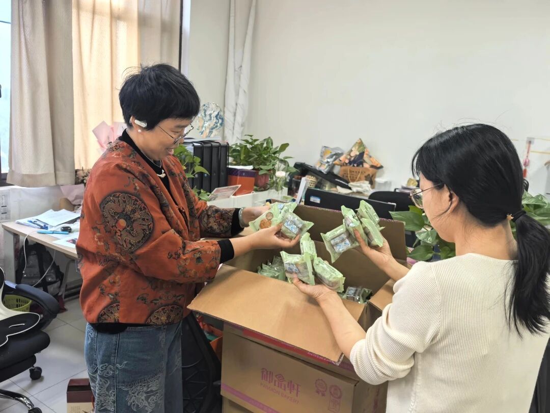 工会有礼·帮扶助农的甜。今年中秋,学校工会采购了1600余份中秋节慰问品发放至全体教职工,中秋慰问品来自帮扶地区——子洲的特色美食——馃馅。此次选择学校帮扶地区的特色产品作为中秋慰问品,既是对教职工的贴心问候,也是学校积极履行社会责任、助力帮扶地区产品推广的具体体现,实现了“慰问教职工”与“帮扶助农”的双重意义。