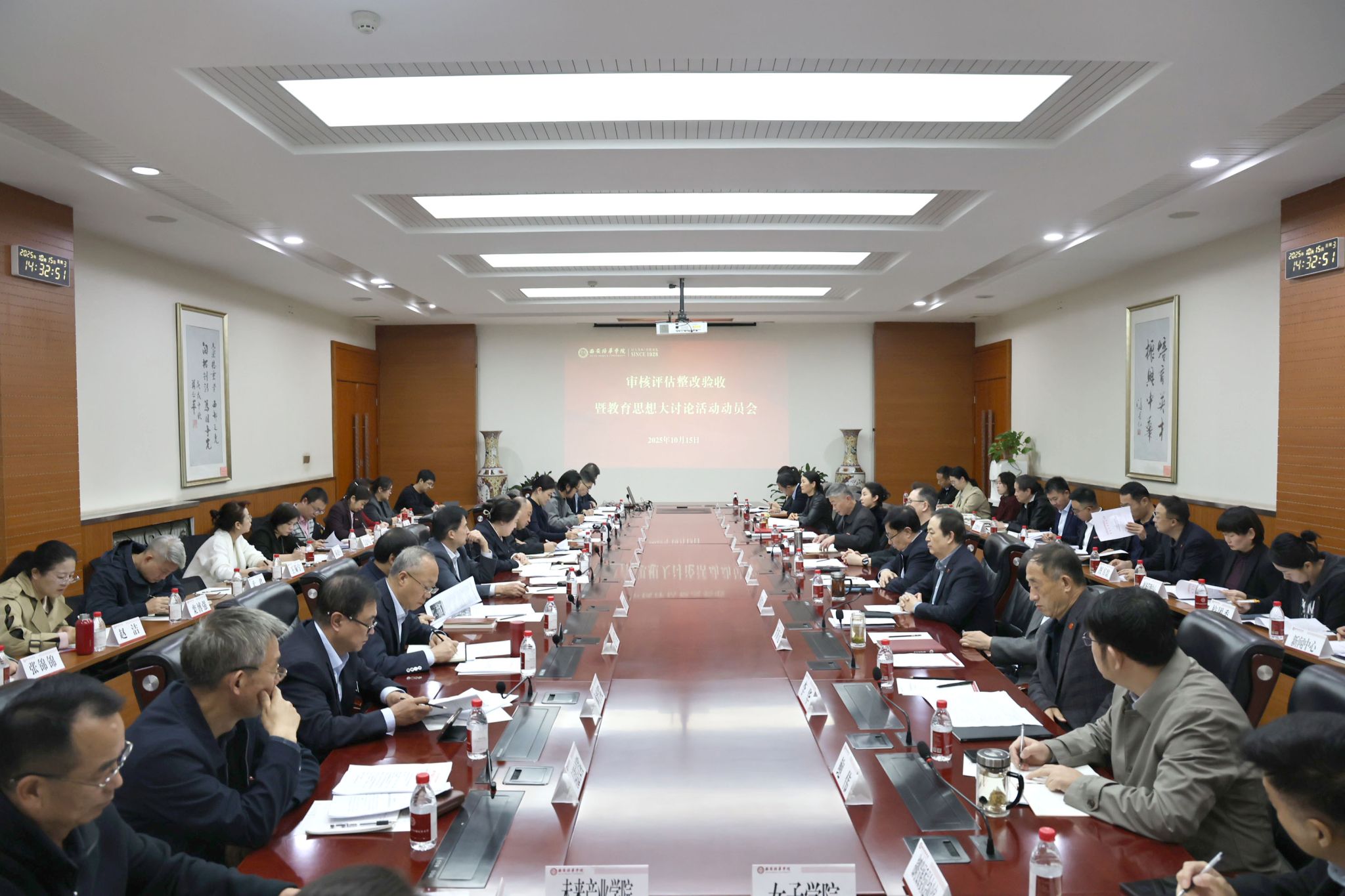会议现场,常务副校长胡俊生对审核评估整改终期检查验收工作作详细部署,明确整改验收重点任务与时间进度安排。他强调,评估整改工作须以立德树人为根本任务,以全面提升人才培养质量为核心,严格遵循“以评促建、以评促改、以评促管、以评促强”的评估原则,将终期检查验收作为深化教育教学改革、强化内涵建设的重要契机。要坚持目标、问题、结果导向相统一,聚焦审核评估突出问题,确保问题清单清零见底,各项整改任务高标准高质量落实到位,建立长效整改机制,持续提升人才培养质量,助力学校高质量发展。