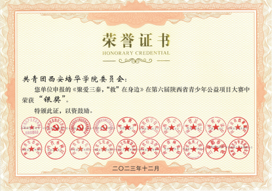 《聚爱三秦,“救”在身边》在第六届陕西省青少年公益项目大赛中荣获“银奖”