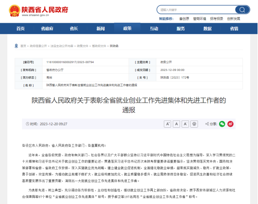 学校是全省高校中唯一获此殊荣的民办高校,这也是迄今为止,由陕西省政府授予的最高规格就业工作荣誉表彰。