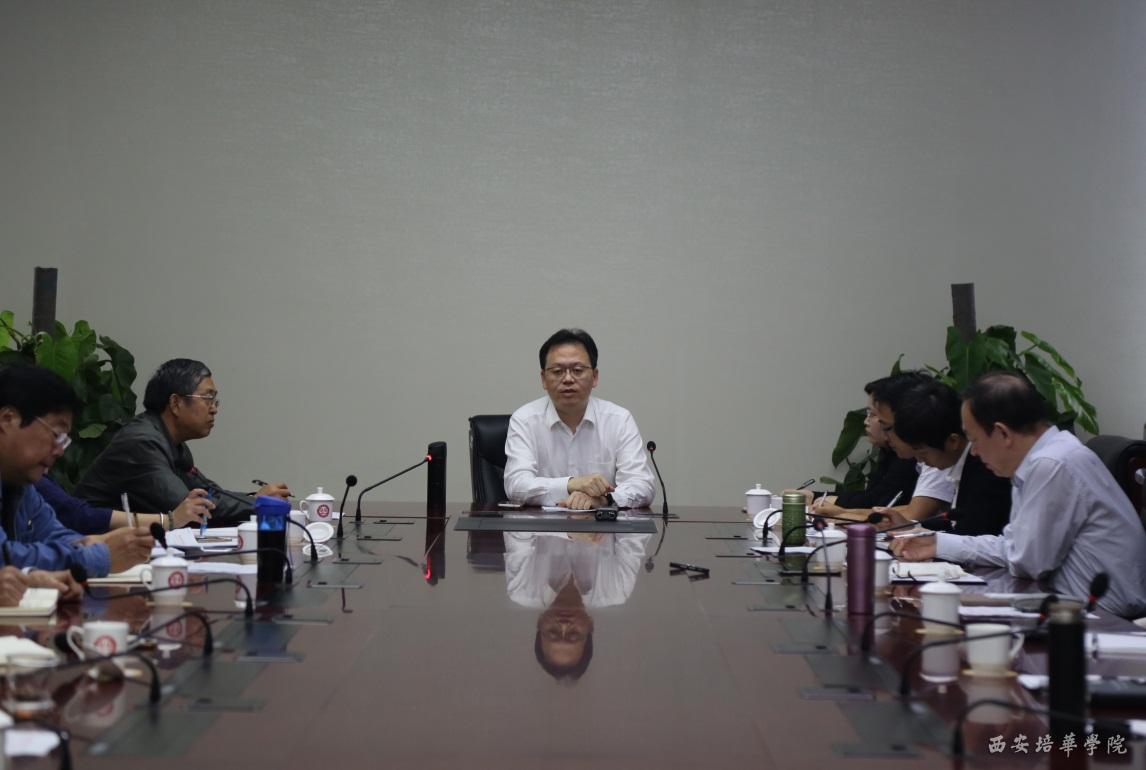 王拴才校长宣读了《关于成立转型发展与评估工作组织机构的通知》(培华院发〔2016〕20号) ,宣布了转型发展与评估工作领导小组及其下设机构的人员组成及工作职责,并对审核评估工作提出了六点要求。一是认识到位。深刻理解审核评估工作的重要意义,准确把握审核评估的核心是对学校人才培养目标的实现程度进行评价,旨在推进人才培养多样化,二级学院要对各专业人才培养目标科学、合理地定位,准确凝练自己的专业特色,提高办学竞争力;二是责任到位。各级部门要做好审核评估组织动员工作,做出各阶段任务的具体时间安排表,牢牢抓住审核评估的关键环节和核心任务,分解任务要具体,责任落实到人。三是要求到位。要将审核评估各项工作与学校的发展建设和常规工作密切地结合起来,按照审核评估指标体系的要求指导和规范日常工作;四是整改到位。吸取合格评估的经验教训,建立自我评估机制,问题整改要及时到位;五是学习到位。要深刻领会审核评估指标的内涵和实质,工作中应本着开放学习的态度,经常相互交流和沟通,多向兄弟院校学习借鉴成功的经验,取长补短;六是要统筹协调、统一领导,在理事长为组长的领导下开展工作。要按照学校的总体部署,在转型发展与评估办公室统一协调下开展工作。