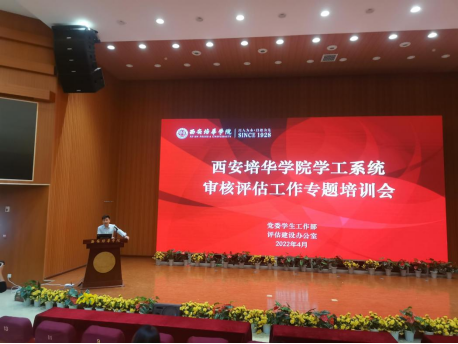 4月26日下午,我校在图书馆报告厅召开了“西安培华学院学工系统审核评估工作专题培训会”,发展规划与质量建设中心主任赵巍对辅导员如何落实审核评估工作进行针对性培训。会议由学工处主持,各二级学院学工系统领导、辅导员等百余人参加培训。