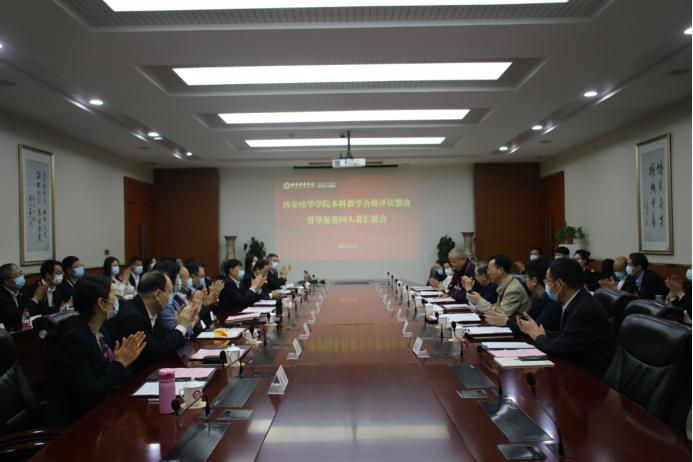 5月17日,陕西省教育厅、西部评估中心组织以西安电子科技大学原副校长傅丰林为组长,西安科技大学副校长王贵荣、西安邮电大学高教所所长王得忠、西安建筑科技大学财务处处长刘光辉、西安交通大学人才交流中心主管梁文洁、中国西部高等教育评估中心主任陆根书、中国西部高等教育评估中心副研究员李珍艳等为组员的合格评估整改督导组一行7人,对我校本科教学工作合格评估督导复查半年整改工作进行“回头看”。