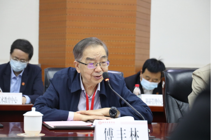 傅丰林教授代表专家组介绍了本次合格评估整改督导复查回头看工作的各项要求。他指出,专家组将按照教育厅本科教学工作整改督导复查回头看的各项工作要求,与学校共同完成好此次回头看检查任务。