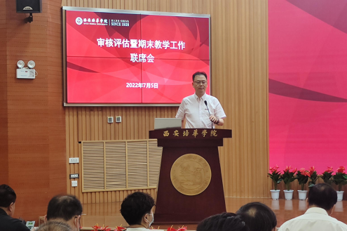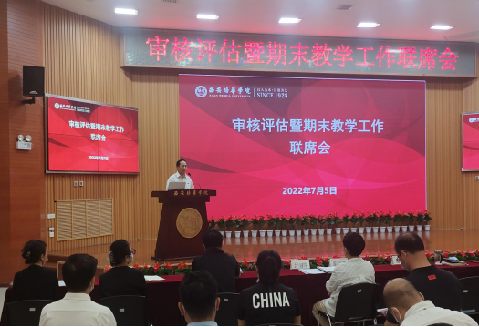 7月5日下午,学校于明德楼四楼报告厅召开了审核评估暨期末教学工作联席会。理事长姜波、校长李映方、常务副校长胡俊生、各二级学院院长及副院长、各职能部门负责人等参加了会议。会议由胡俊生常务副校长主持。