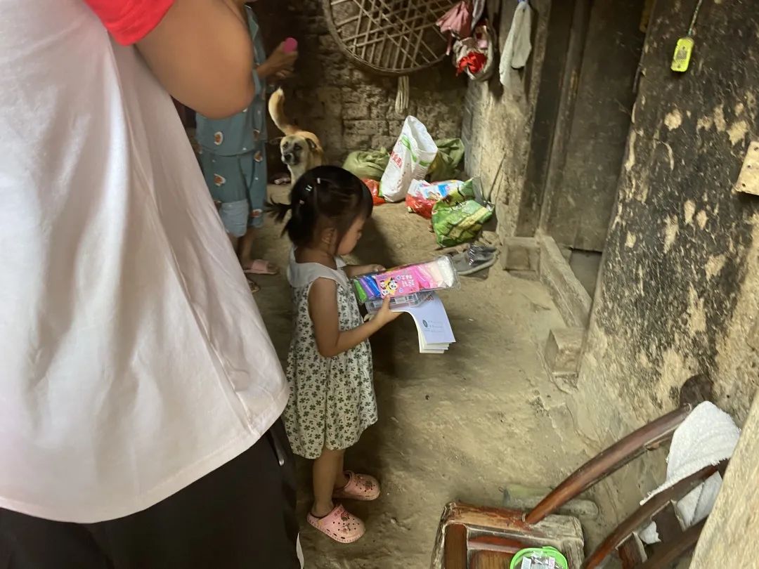 团队一行人在入户探访的过程中,发现村内存在很多父母在外务工而由爷爷奶奶照顾的留守儿童。于是一行人购买了水彩笔、画笔、画本等学习用具,从而丰富他们的暑期生活,让他们感受到点点温暖。