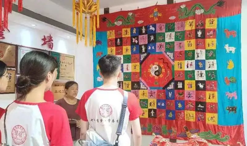李慧莲女士介绍,中间为佛教和道教相结合起来,两侧为十二生肖,中间的各个小图人物为各个传说寓言故事譬如孟姜女哭长城。