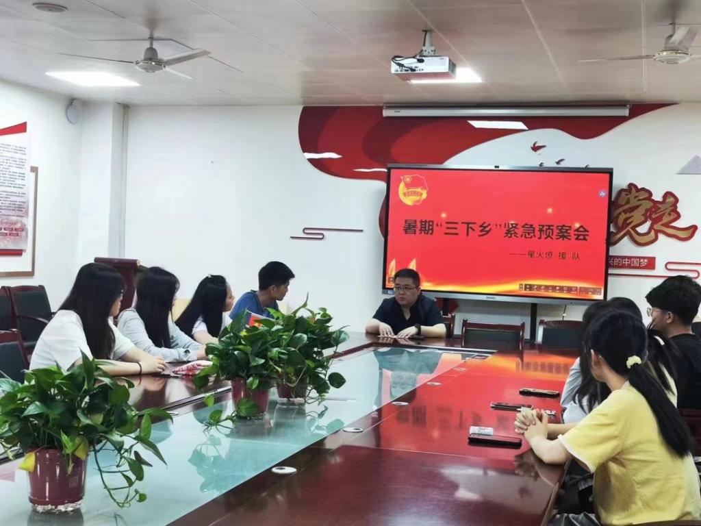 7月10日晚上,指导老师张超老师为星火燎“援”队开暑期“三下乡”紧急预案会和安全培训会,多次强调安全问题,也祝愿此次暑期“三下乡”活动可以顺利完成。