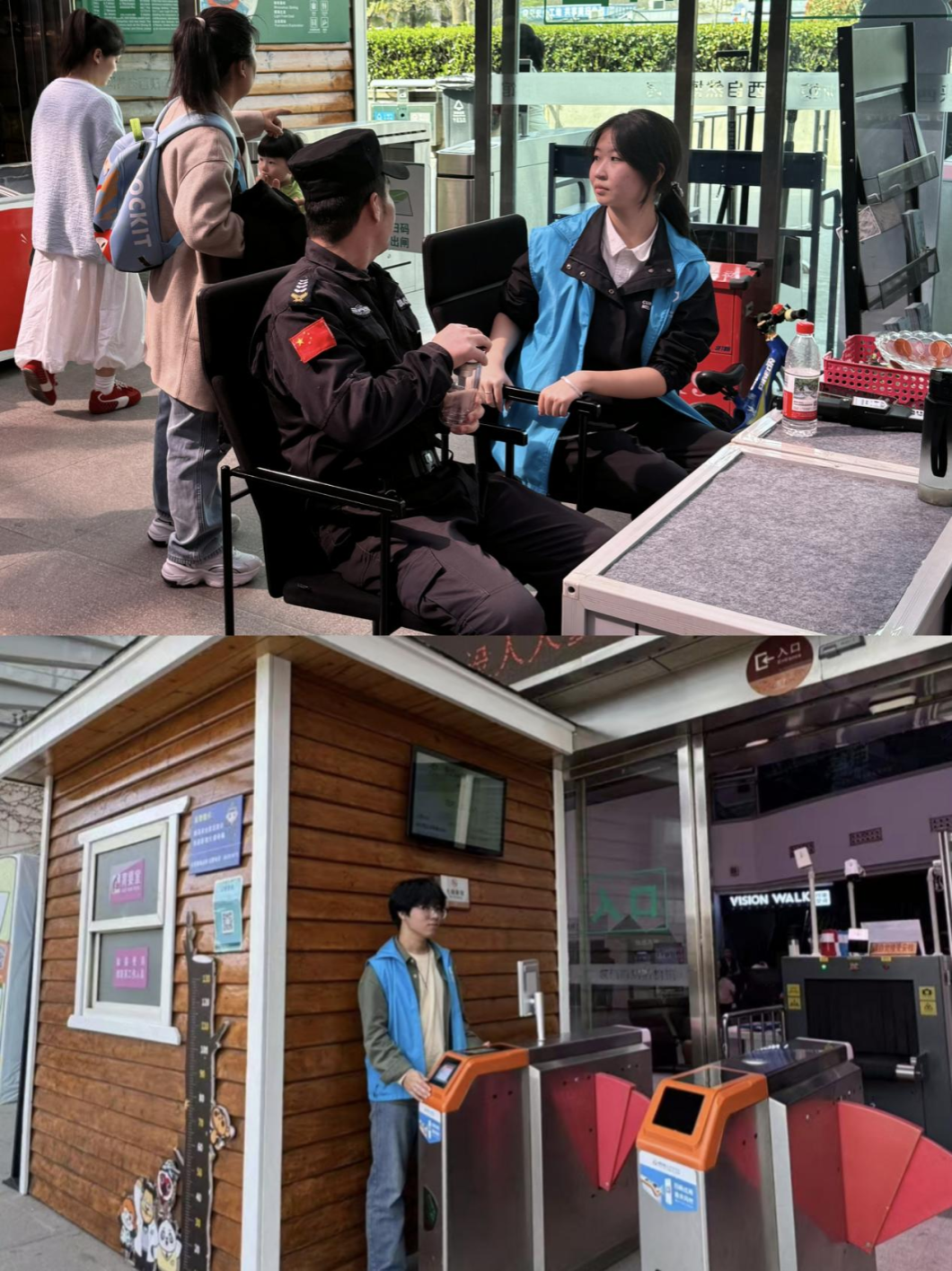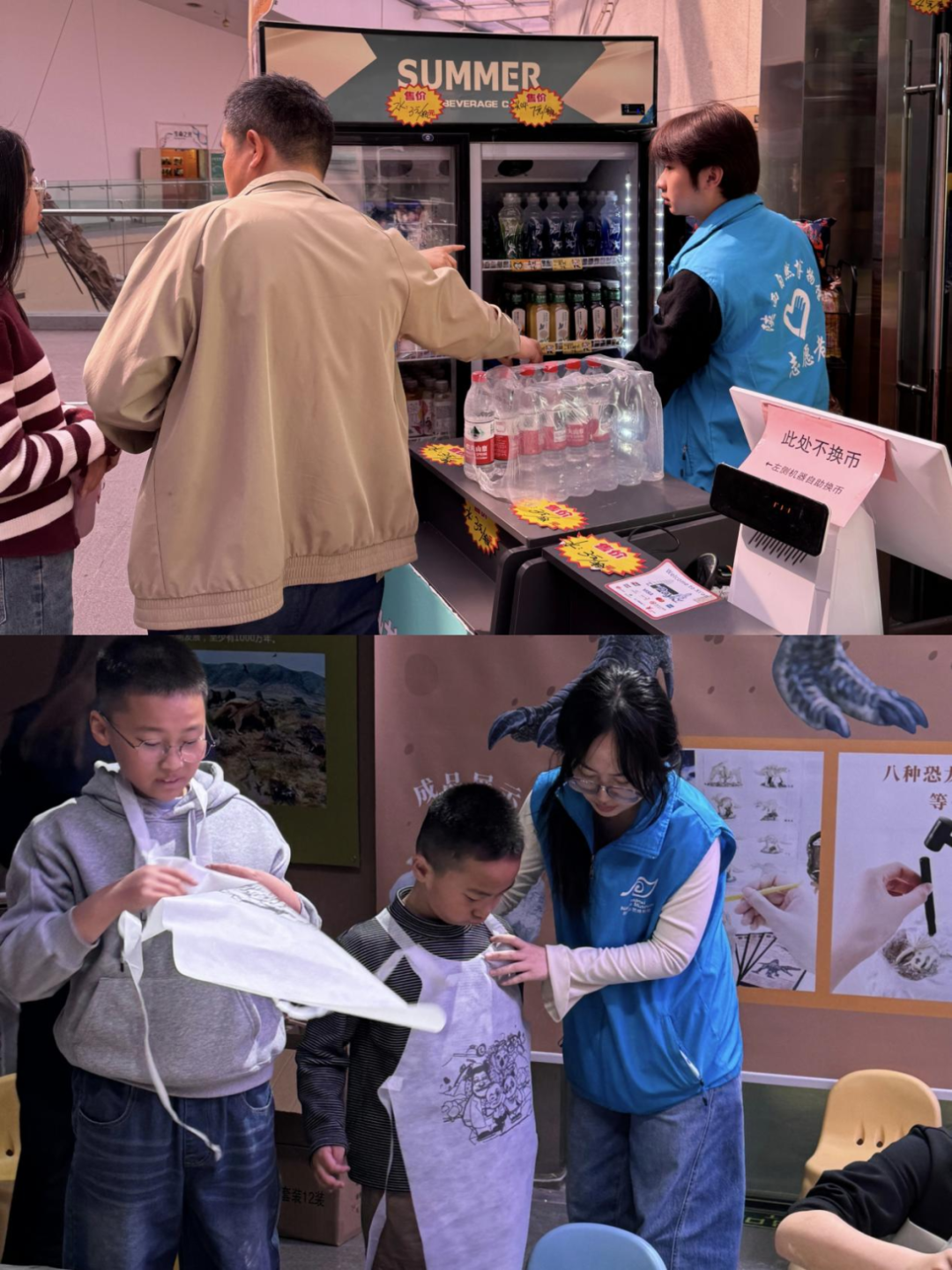 活动当天,志愿者们怀揣滚烫初心,按既定分工迅速到岗。在博物馆入口,志愿者们分析客流数据,实施动态引导,保障游客高效、有序检票入场。科普展区里,志愿者们指导小朋友们规范穿戴防护装备,通过互动演示与讲解,在孩子们心间播撒科学的火种。此外,志愿者们也与安保团队紧密协作,积极开展安全巡查,为活动筑牢安全防护网 。