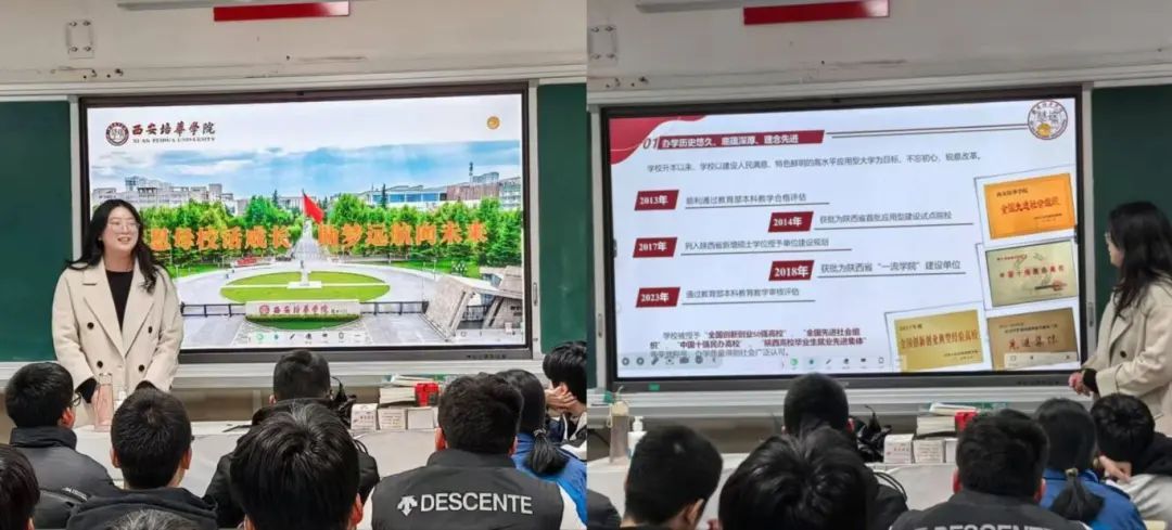 活动伊始,会金18队的林嘉怡同学对西安培华学院进行全面介绍。她从学校1928年的前身西安第一女子平民职业学校讲起,讲述学校如何历经岁月变迁,发展成为如今学科门类齐全、办学特色鲜明的综合性院校。