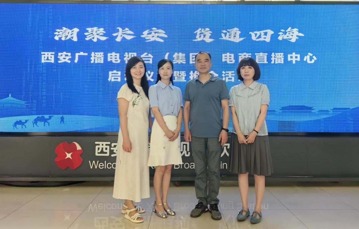 2025年7月16日上午9:30,会计与金融学院数智经济系主任李亚子、电子商务专业带头人王艳、市场营销团队负责人杨柏欢、电商专业教师闫辉一行走访西安广播电视台电商直播中心。教师代表走进广电直播间,通过数据洞察、情景演绎与沉浸式参观,完成了一场校企协同育人的深度对话。