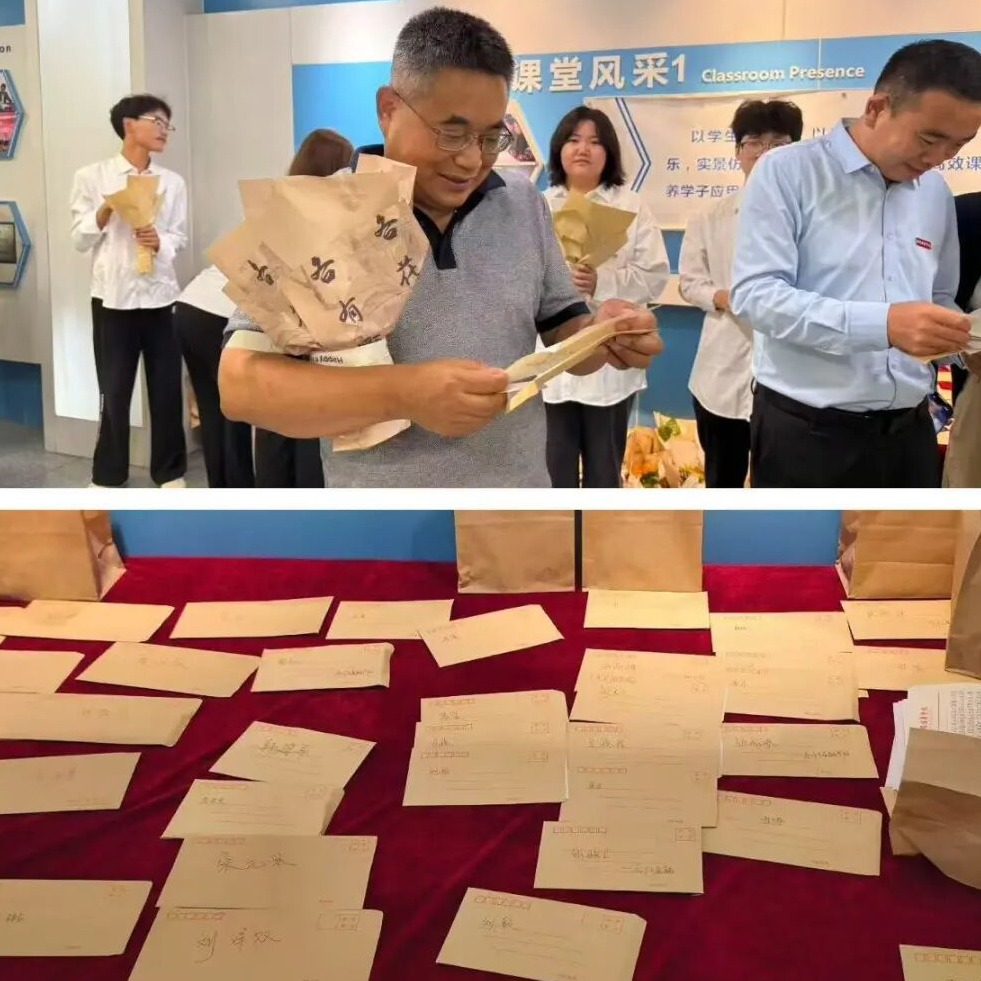 在这个精心准备的信封里,装满了同学们悄悄为敬爱的老师们写下的祝福话语。每一张纸条上都记录着孩子们最纯真的心意,字里行间流露着对老师的感恩与爱戴。当老师们展开这些信纸时,真切地感受到了学生们发自内心的最纯粹、最真挚的情感,这份情谊让每一位老师都为之动容。