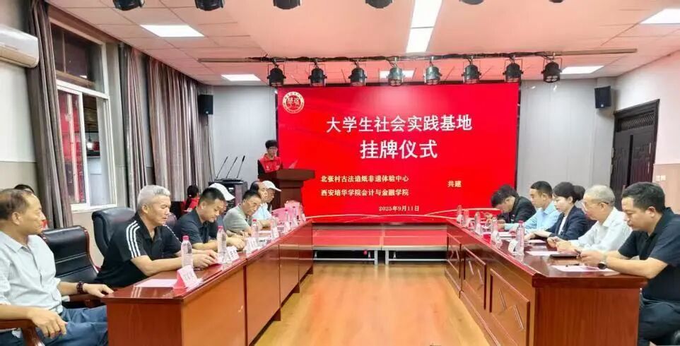 为深入贯彻新时代实践育人理念,促进非物质文化遗产保护传承,2025年9月11日,西安培华学院会计与金融学院与北张村古法造纸协会在北张村古法造纸非遗体验中心隆重举行“大学生社会实践基地”挂牌仪式。此举标志着校地双方在实践育人、文化传承等领域的合作迈入新阶段。