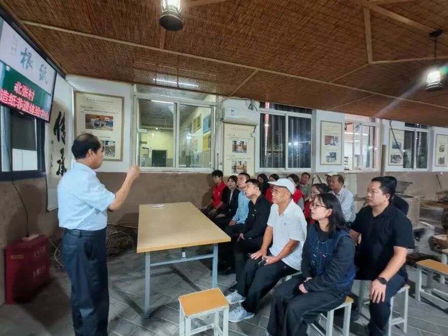 挂牌仪式结束后,与会嘉宾共同参观了北张村古法造纸非遗体验中心。在传承人的细致讲解下,嘉宾们实地观摩了楮皮纸制作的完整工艺流程,亲身体验了抄纸、晾晒等关键工序。现场互动热烈,书画艺术家们更即兴挥毫,在新制成的楮皮纸上创作题字,以笔墨丹青与千年古纸展开跨越时空的艺术对话,将现场气氛推向新的高潮。