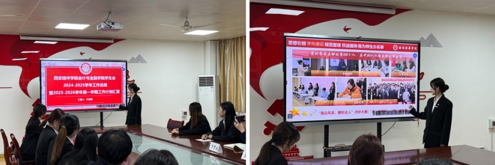 在本次座谈会中,共青团会计与金融学院委员会、会计与金融学院学生会及会计与金融学院青年志愿者协会的学生代表依次进行了工作汇报。各组织围绕过去一年的工作成果以及未来规划进行了系统梳理与展示。汇报内容详实、重点突出,充分展现了学生干部的责任意识与组织能力,也为学院老师全面了解各学生组织的工作动态提供了重要依据。
