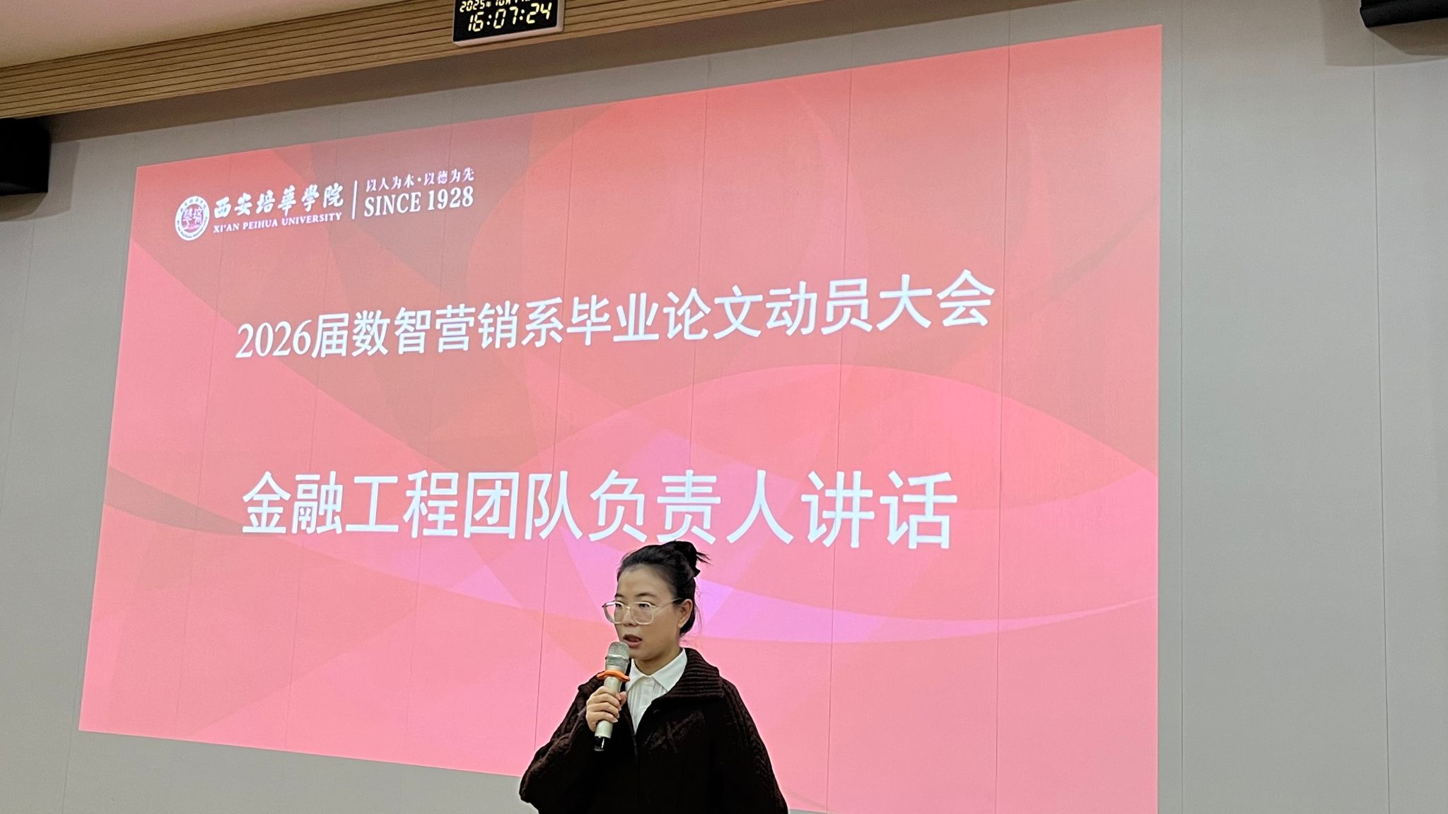 为全面部署2026届本科毕业论文工作,强化学术规范,提升论文质量,引导学生以严谨务实的态度和开拓创新的精神顺利完成毕业论文,2025年10月17日下午16:00,会计与金融学院数智经济系在博远楼J201举行电子商务、金融工程和市场营销三个专业本科毕业论文动员会。本次会议由数智经济系石妍老师主持,会计与金融学院教学副院长孟君、院长助理吴春娜教授、数智经济系李亚子主任、全体论文指导老师及 2026届本科生参加会议。